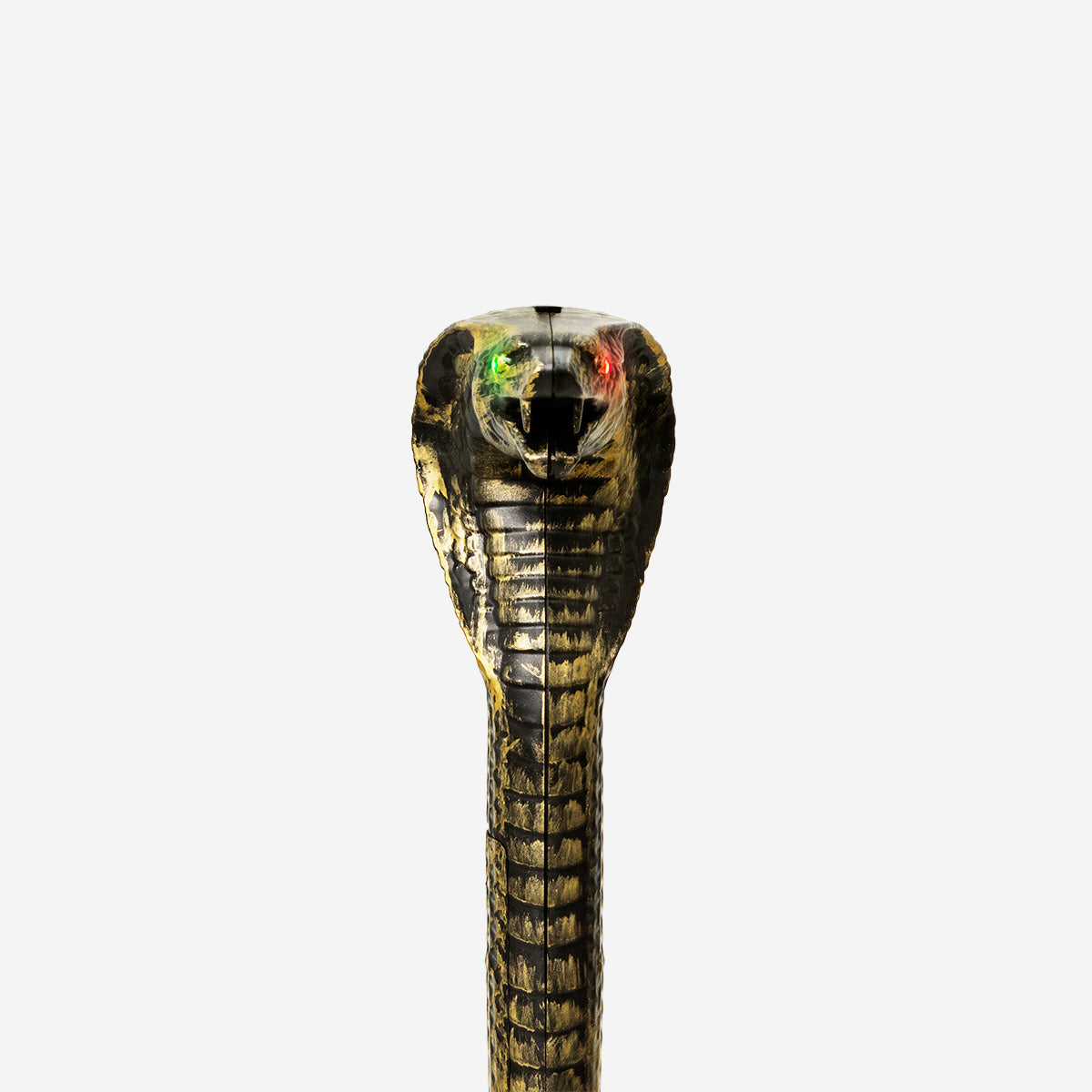 Metalden üretilmiş sağlam yapısı, uzun süreli kullanım için dayanıklılık sunarken, dramatik yılan başı detayı kostümünüze teatral bir hava katar. 2 adet AA pil ile çalışan Yılan Detaylı Işıklı Baston, ışık ve buhar efektleri sayesinde interaktif bir deneyim sağlar. Kostüm aksesuarı olarak kullanıldığında büyüleyici bir karakter yaratmaya yardımcı olurken, sahne veya ev dekorasyonlarında kullanıldığında da dikkat çekici bir odak noktası olur. Cadılar Bayramı gardırobunuza hem ürkütücü hem de sofistike bir ek yaparak, kutlamalarınızı unutulmaz kılar.