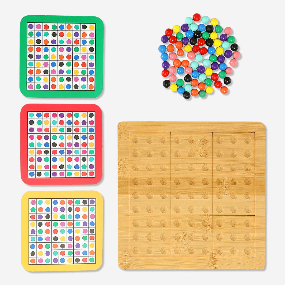 Bu eğlenceli set, hem zihnini çalıştırmak hem de iyi vakit geçirmek için mükemmeldir. Renkli boncuklar ve farklı zorluk seviyeleri, oyunun keyfini ikiye katlar. Haydi, Sudoku'nun keyfini çıkar!