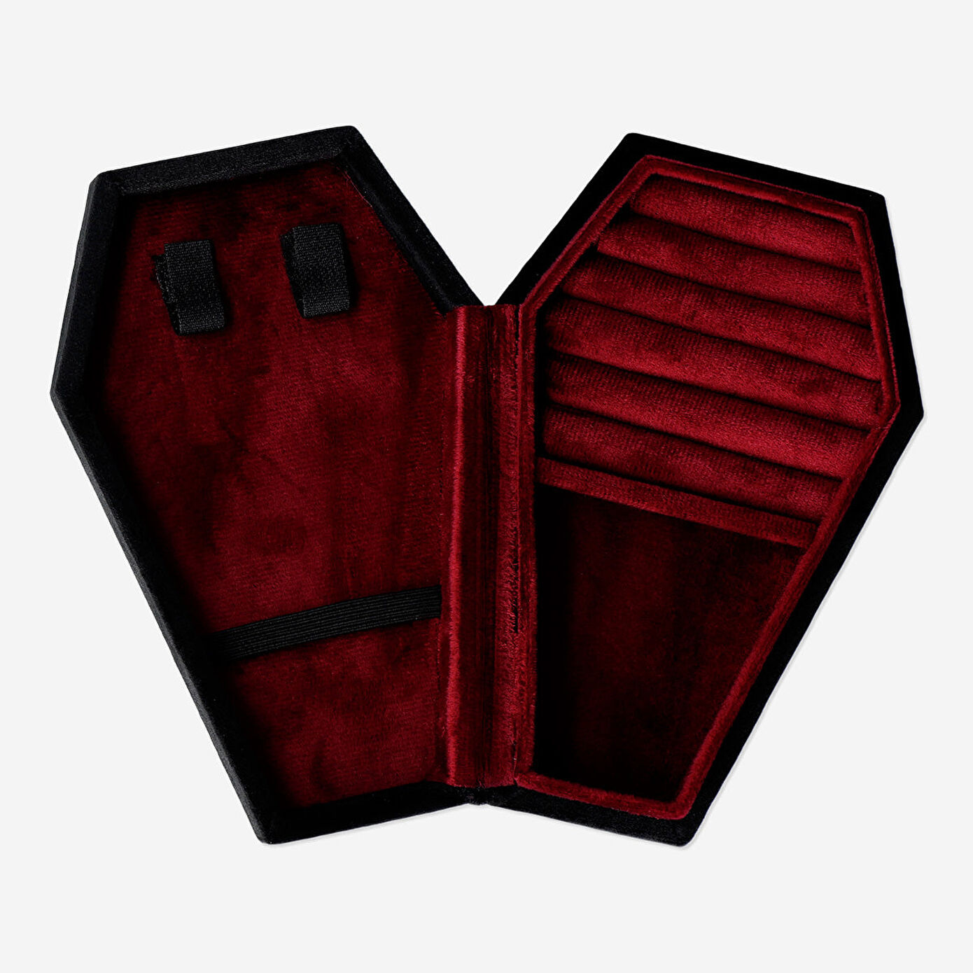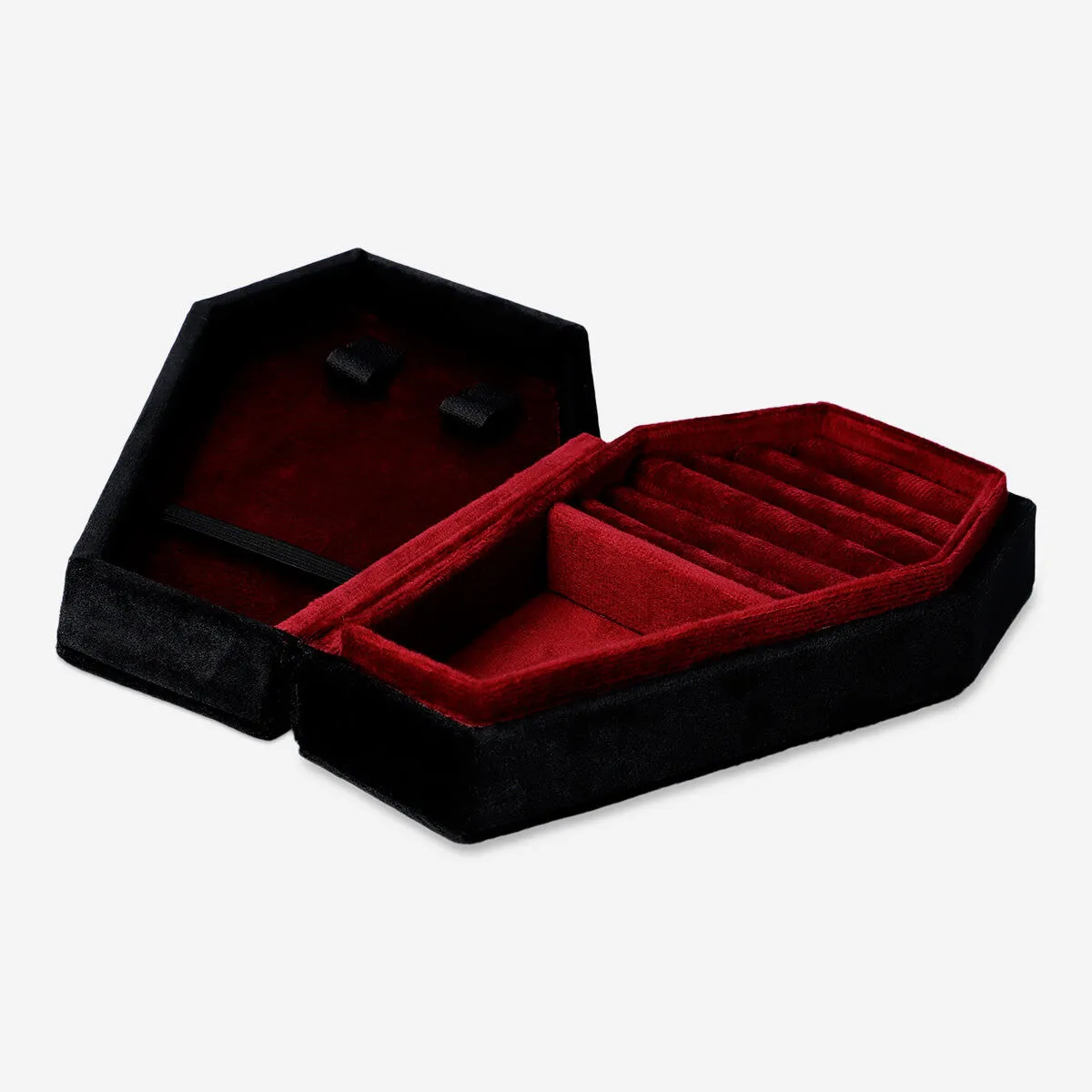 Ayırt edici tabut şeklindeki tasarımı ve zengin kırmızı iç kısmı, güzellik ve mücevher saklama koleksiyonunuza gotik bir çekicilik katar. Pratiklik ve özgün tasarımıyla, tuvalet masanızda göz alıcı bir parça olarak öne çıkar. Bu mücevher saklama kutusu, hem işlevsel hem de estetik açıdan tatmin edici bir seçenek arayanlar için mükemmel bir tercihtir.