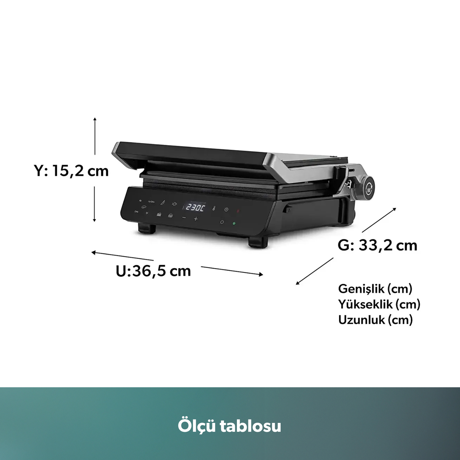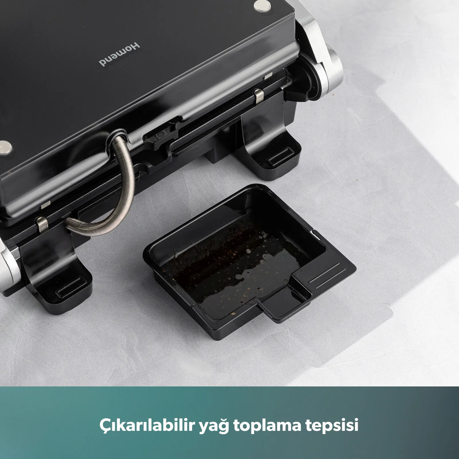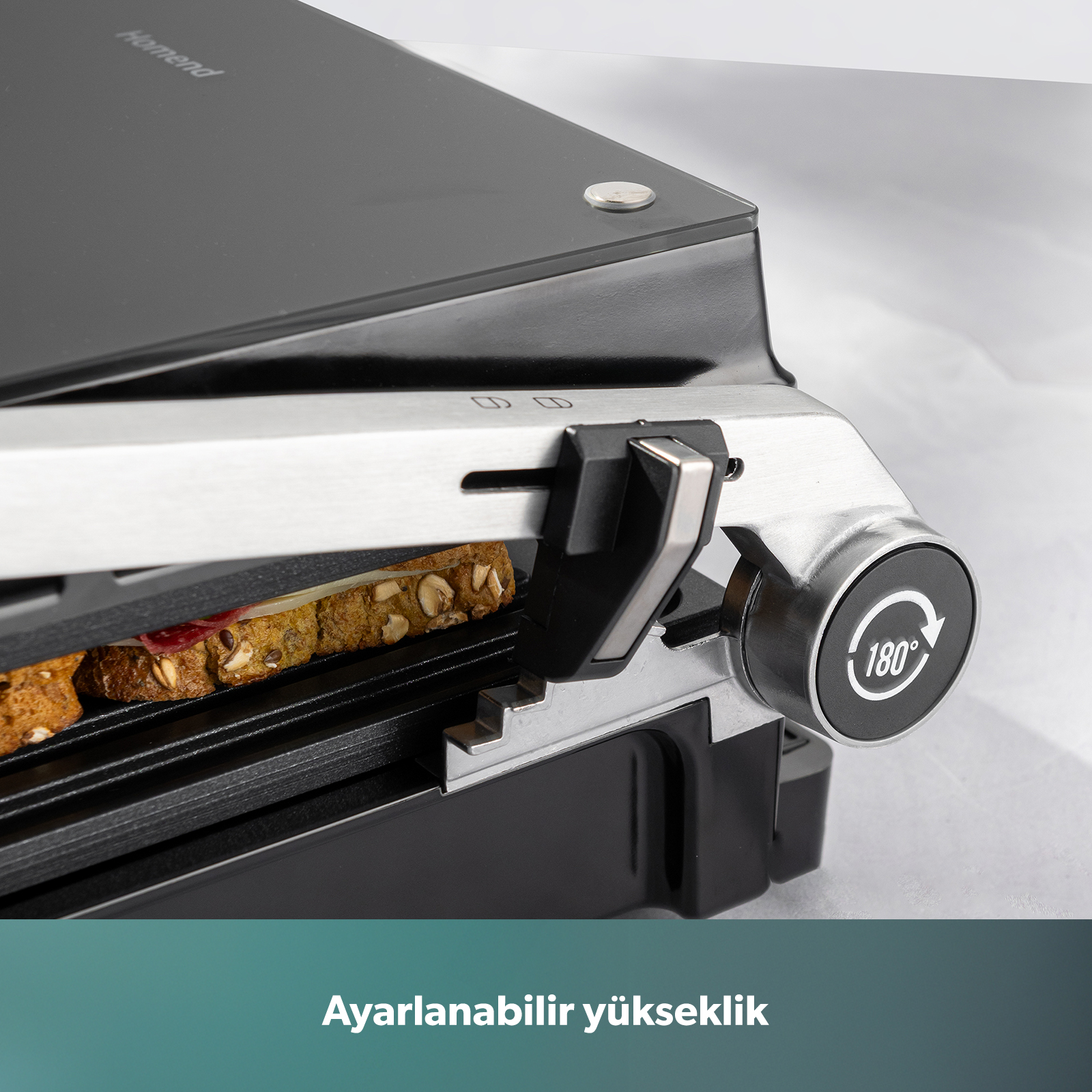 Homend Grilliant 1343H Cam Yüzeyli, 5 Hazır Programlı, Döküm Plakalı, Led Ekranlı Konuşan Tost ve Izgara Makinesi