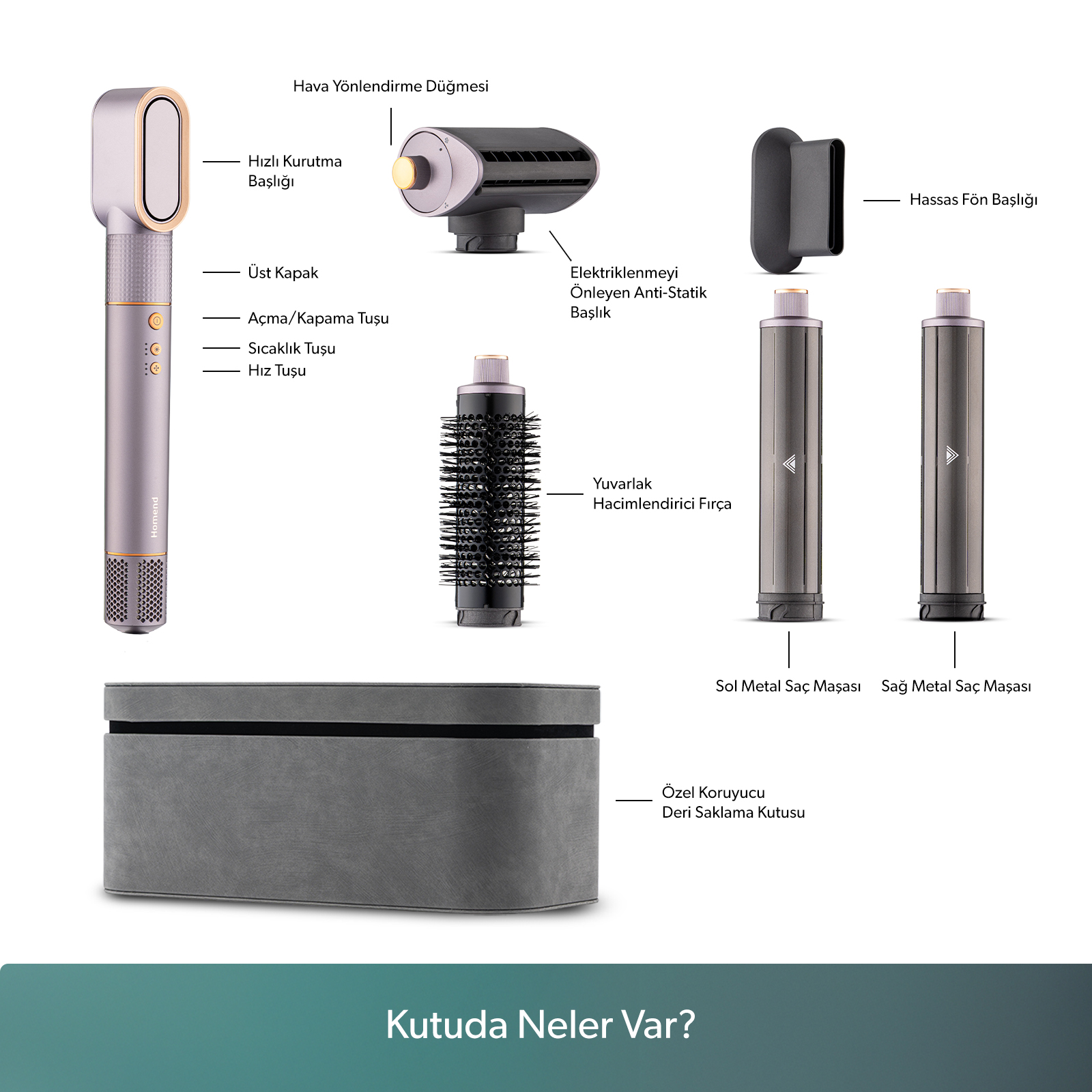 Tek tuşla mükemmel bukleler: Sol Maşa ile sola, Sağ Maşa ile sağa doğru kıvrım. Sadece hava akımıyla elle temas etmeden saçınız saniyeler içinde zahmetsizce şekillenir.