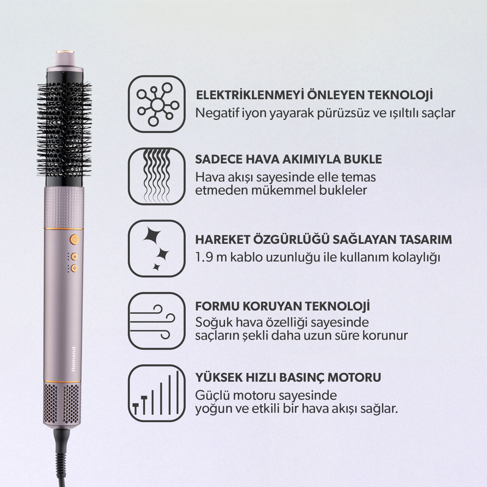 Homend Hairmony 4606h Plus Saç Kurutma ve Şekillendirme Seti Mor