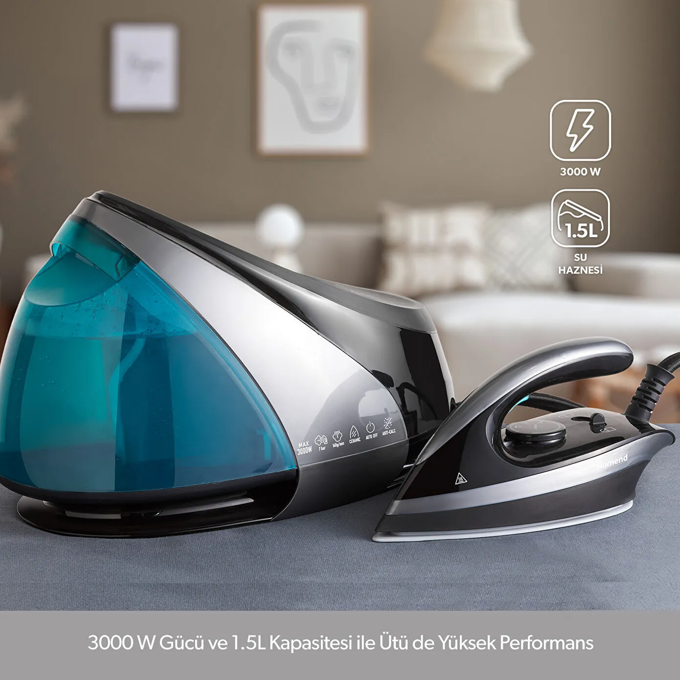 - 3000 W gücü ile ütüde yüksek performans.