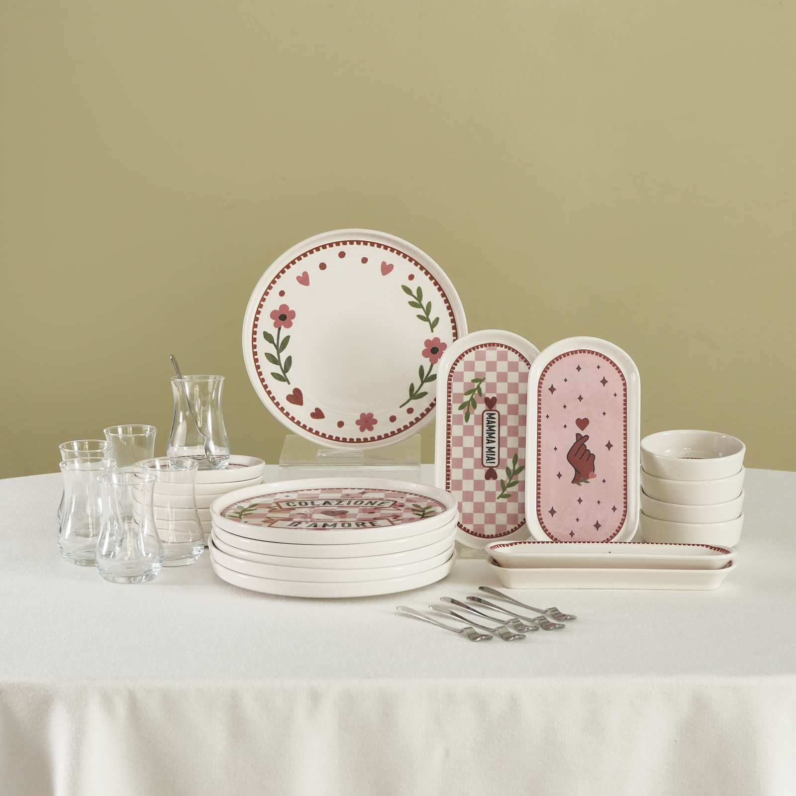 İstanbul Porselen Bellis 32 Parça 6 Kişilik Kahvaltı Takımı
