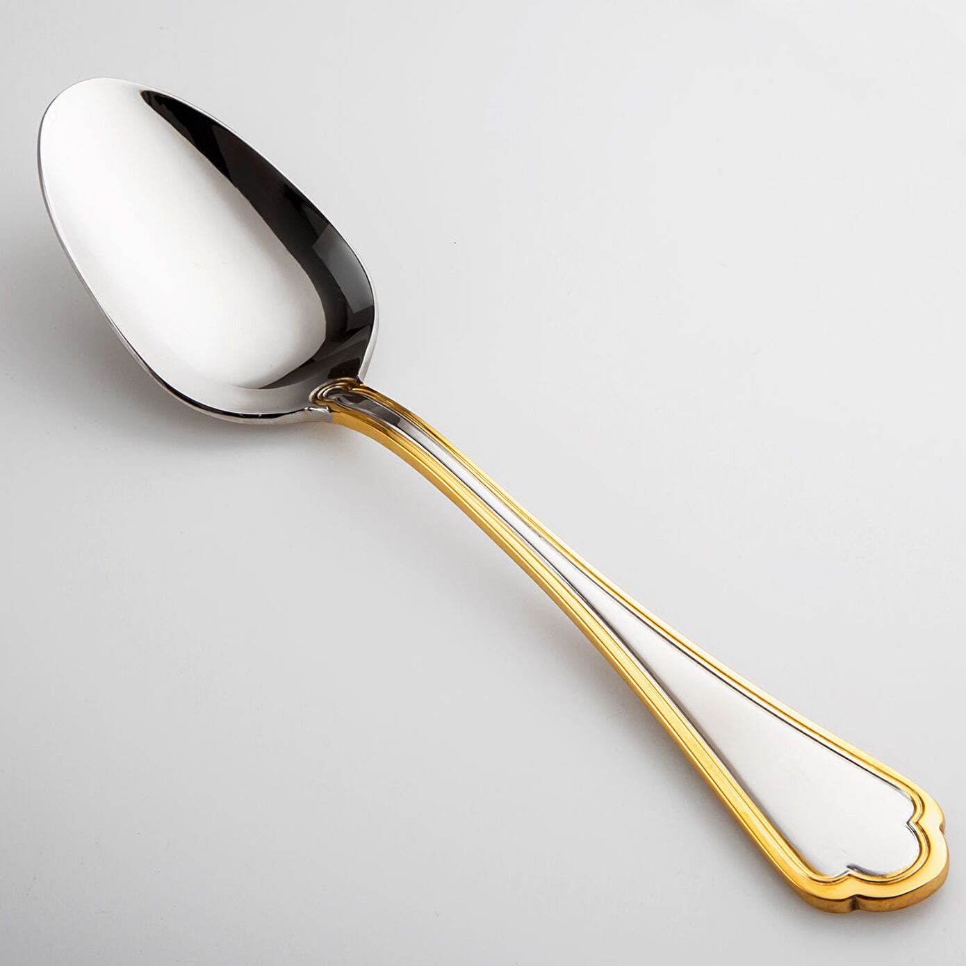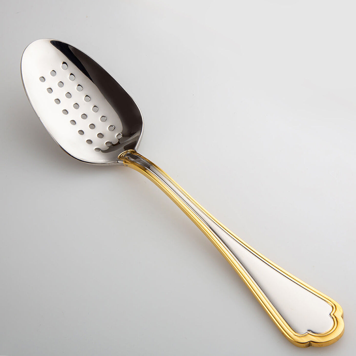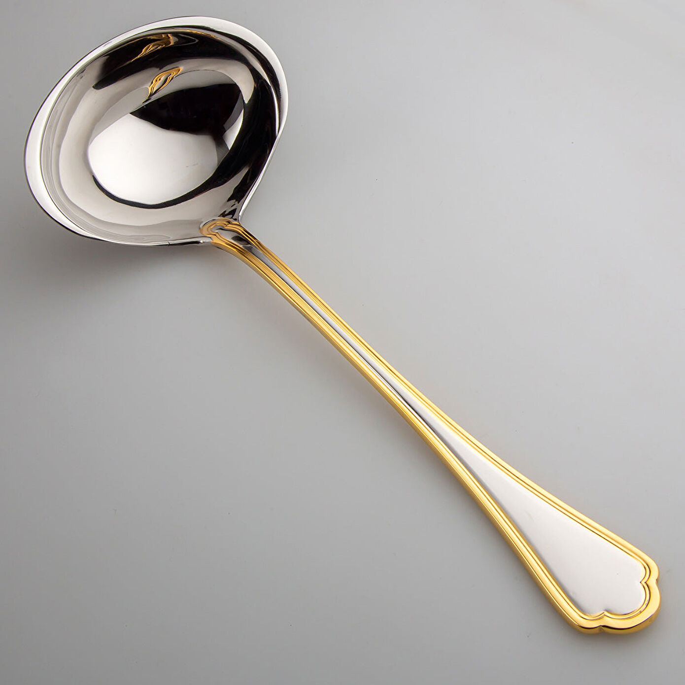 Mutfakların olmazsa olmazlarından olan servis setleri bu sefer de Jumbo 1400 ile karşınıza çıkıyor. Gösterişli şık bir parça arayanların tercihi olan Jumbo 1400 altın rengi detaylara sahip servis seti, kullanıcıların da gözdesi olmayı başarıyor. Set içeresinde; servis çatalı, kaşığı, çorba kepçesi, yemek kevgiri ve pasta küreği bulunuyor olup bir yemek menüsünde olabilecek her türlü yiyeceğin servisinde kullanılabilecek ürünleri sunuyor. Böylece sofralarda pratik bir şekilde servis yapabilmenize imkân sağlıyor. Bu servis seti, kullanımı açısından da rahat bir tasarıma sahip. Ergonomik bir şekilde üretilen bu parçalar elinize rahatlıkla oturarak güvenli bir şekilde yemek servisi yapabilmenize yardımcı olur. Tüm bunları yanında sofra düzenine de uyum sağlayabilen bu servis seti tüm çatal, kaşık, bıçak takımlarıyla da uyum sağlayabiliyor. Siz de bu şık parçaya sahip olmak için hemen sipariş oluşturabilirsiniz.