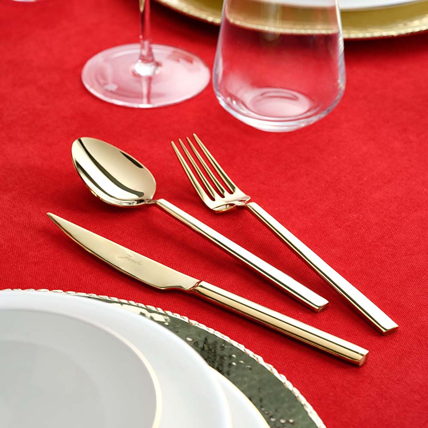 Klasikleşmiş silver renkteki geleneksel çatal kaşık bıçak takımlarına adeta meydan okuyan Jumbo 1800 titanyum gold çatal kaşık bıçak takımı, mat altın rengi ile kalıpların dışına çıkıyor. Yemek masasına farklılık getirmek isteyen, yeni bir soluk arayışında olanlar için harika bir seçenek olan Jumbo 1800 6 kişilik gold çatal kaşık bıçak takımı, en önemli misafirlerinizi ağırlamanın şık, zarif ve modern yolunu sizlere sunuyor. Siz de hemen şimdi bir Jumbo titanyum gold çatal kaşık bıçak takımı temin ederek hayranlık uyandıracak sofralar kurabilirsiniz.