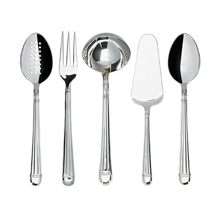 Tamamı paslanmaz çelik malzemeden üretilmiş olan bu servis seti, paslanma, korozyon ve renk atma gibi sorunları hayatınızdan çıkartıyor. Dolayısıyla Jumbo kalitesini bu fonksiyonel ve çok amaçlı servis setinde keşfedebilir ve mutfağınızda üstün kaliteli malzeme kullanmanın keyfine varabilirsiniz. Çorbalarınızı, sulu yemeklerinizi, kızartmalarınızı, pilavlarınızı ve tatlılarınızı bu setten destek alarak zahmetsizce servis edebilir ve unutulmaz davet sofralarına imza atabilirsiniz. Doğru ürünü doğru parça ile servis ettiğiniz zaman hem yemeklerinizi daha lezzetli hem de servis süreçlerinizi daha pratik olacak. Dilediğiniz kadar bulaşık makinesinde yıkayabileceğiniz bu set, paslanmaz çeliğin uzun süreli kullanım avantajından yararlanarak size onu uzun yıllar gönül rahatlığıyla kullanabilme imkanı tanıyor. Üstelik bu set, tamamı gümüş rengi ve narin çizgili tasarımıyla yine benzer modeldeki çatal kaşık bıçak takımlarınız ile harika bir uyum oluşturuyor.