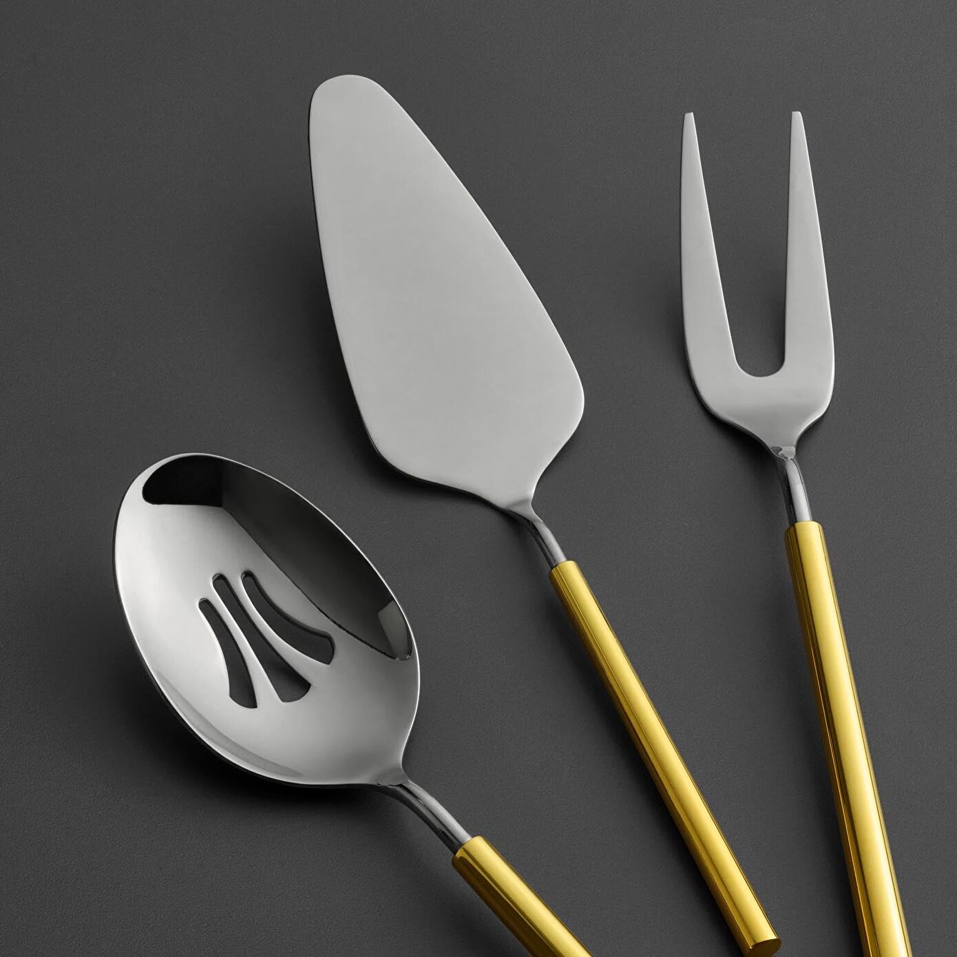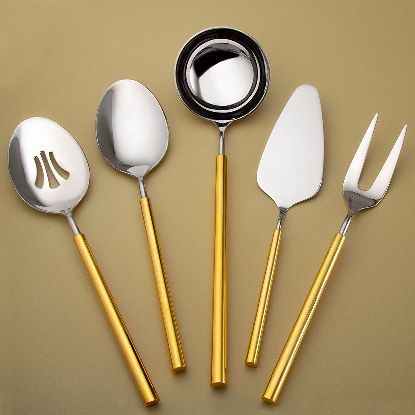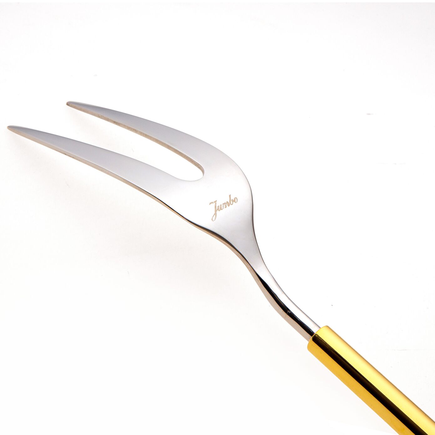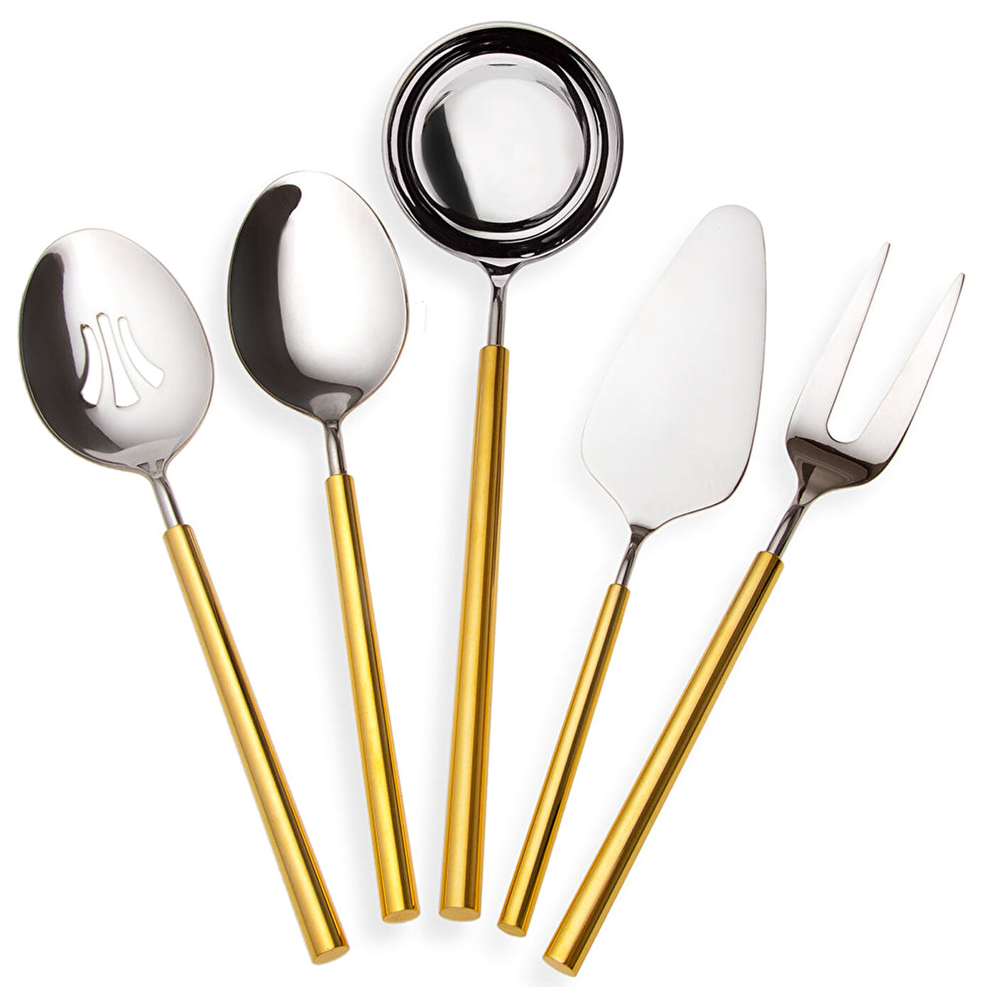 Jumbo 6000 Roller 5 parça servis setini temin ederek yemek servisi söz konusu olduğunda tüm ihtiyaçlarınızı eksiksiz bir biçimde giderebilirsiniz. Toplamda 5 parçadan oluşan bu setin içerisinde her bir ürün, üstün kaliteli Jumbo paslanmaz çeliğinden imal ediliyor. Set içerisinde servis çatalı, servis kaşığı, pasta küreği, çorba kepçesi ve yemek kevgiri olmak üzere 5 farklı parça yer alıyor. Servis çatalını steak ve benzeri et gruplarını servis ederken kullanarak etin parçalanmadan tabaklara yerleştirilmesini sağlayabilir, servis kaşığından faydalanarak ise salatadan mezeye pek çok farklı yiyeceği eşit bir biçimde tabaklara dağıtabilirsiniz. Pasta ve benzeri tatlıları ve hamur işlerini servis etmek için pasta küreğinin işlevselliğinden yararlanabilirsiniz. Elbette çorbalarınızı ve sulu yemeklerinizi servis etmenize yarayacak çorba kepçesi ve diğer yemek çeşitlerinin sunumunu yaparken size kolaylık sağlayacak kevgir de bu setin olmazsa olmazları arasında yer alıyor.