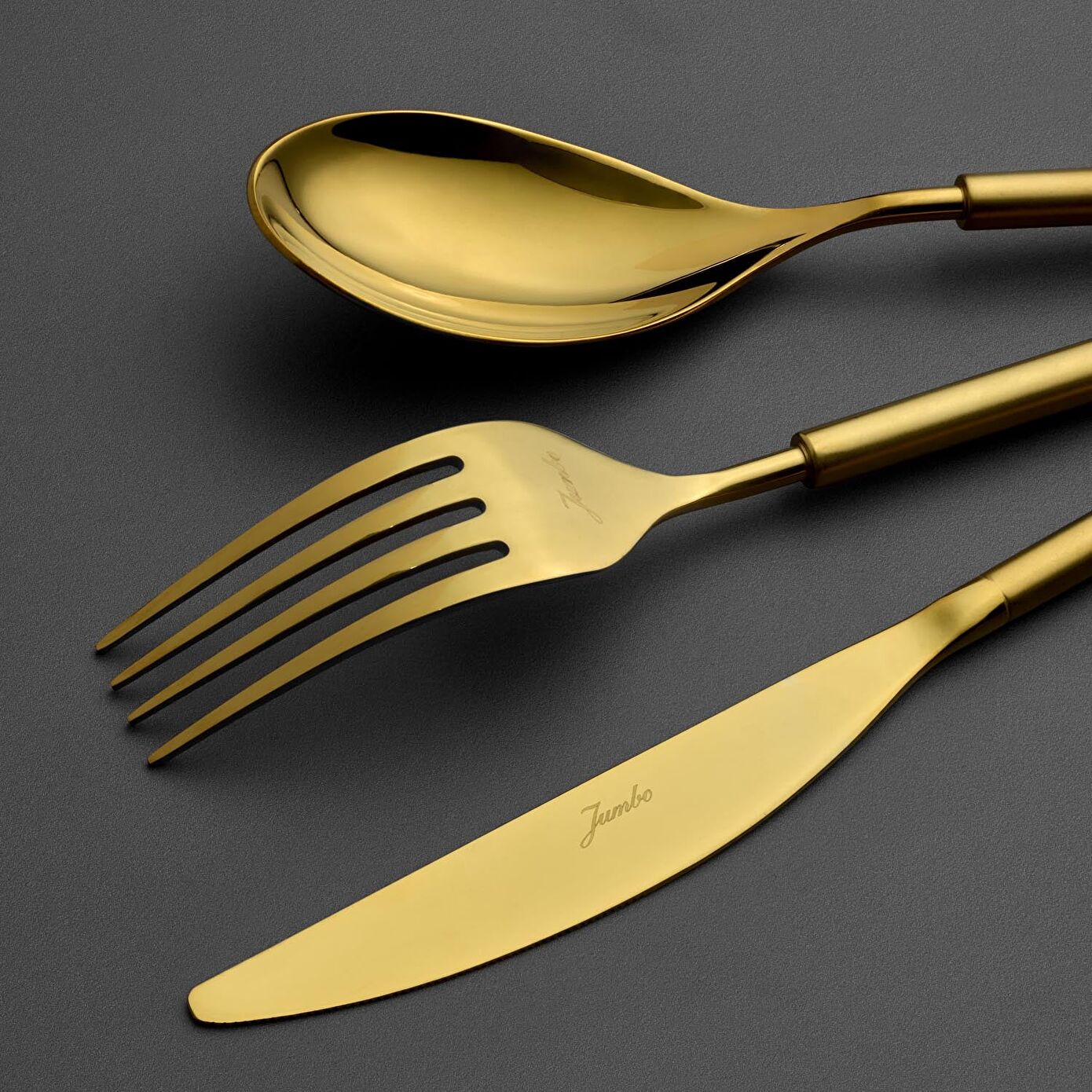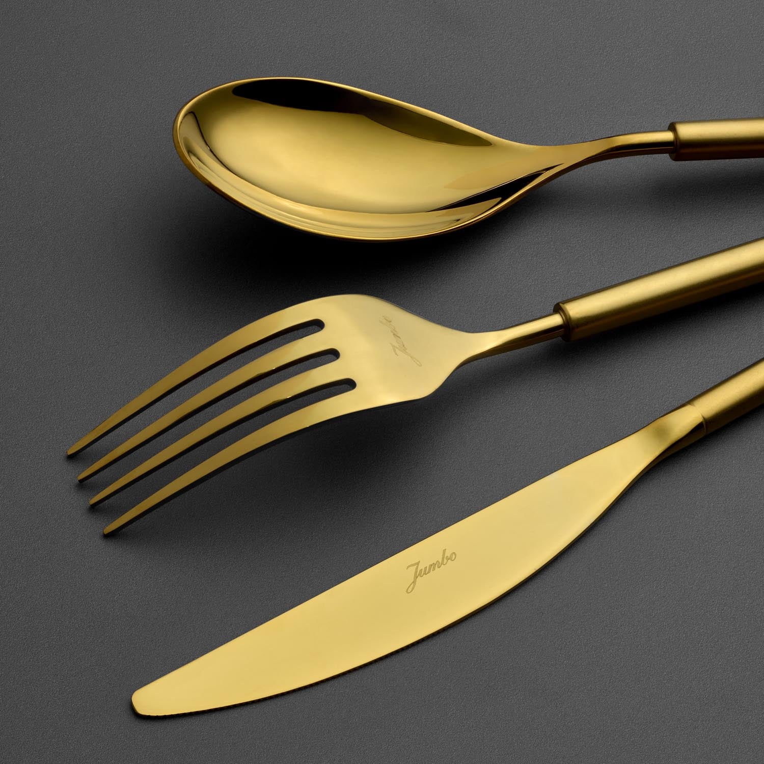 Jumbo 6000 Roller Titanyum Mat Gold 12 Kişilik 84 Parça Çatal Kaşık Bıçak Takımı