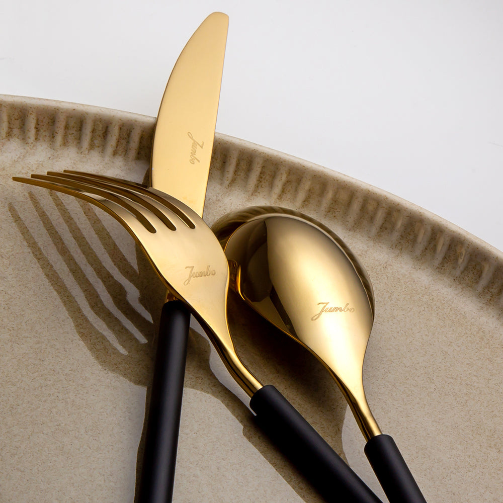 Sofranızdaki Güzellik Jumbo 6000 Roller Titanyum Gold Çatala Kaşık Bıçak Seti