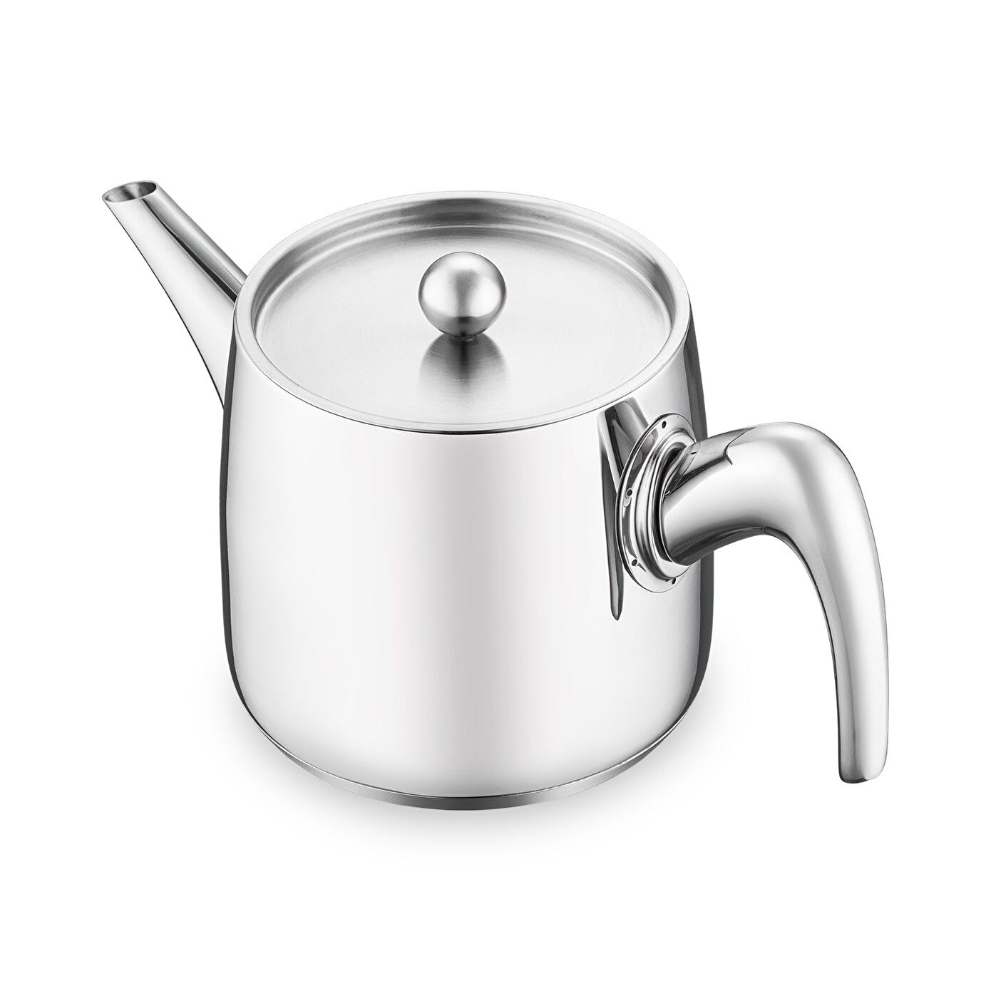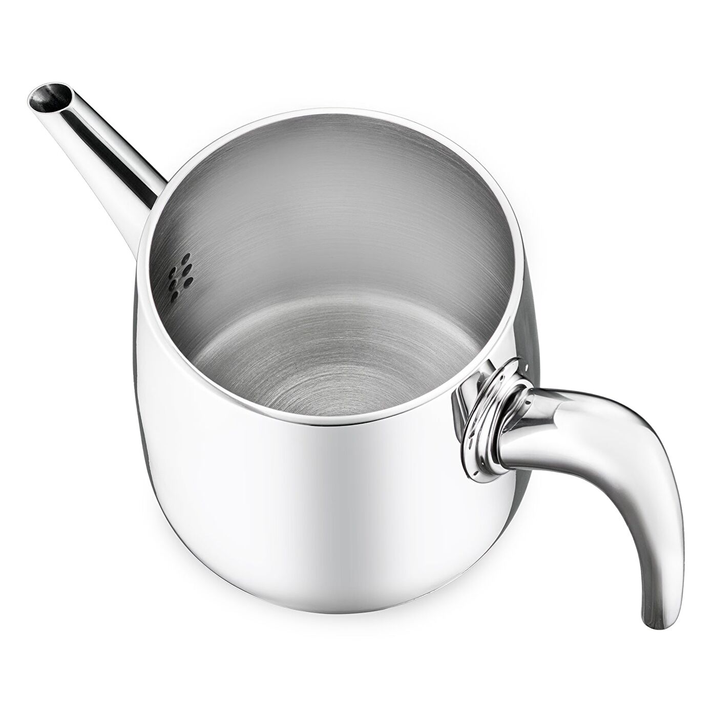 Jumbo 6500 çaydanlık ile siz de kahvaltı sofralarınızı şenlendirebilirsiniz. Bu ürün tamamen çelik malzemeden üretilmiş. Paslanma riski oluşturmayan özel yapısı ve kolay tutuş sağlayan sapları ile Jumbo 6500 full metal çaydanlıkla çok rahat edeceksiniz. Ayrıca bu çaydanlıkla demlediğiniz çaylar oldukça lezzetli. İndüksiyon dahil tüm ocaklarda kullanabileceğiniz ürün 2,25 lt suluk ve 1,05 lt demlik kapasitesiyle beğeni topluyor. Dolayısıyla Jumbo 6500 çaydanlık, 4 ila 6 kişiye çay sunumu için ideal. Ayrıca bu çaydanlığın suluk kısmında bir adet kapak da mevcut. Bu kapak belli bir eğime kadar düşmüyor ve böylece kaynar suyun suluk kısmından dökülmesinin de önüne geçerek güvenli bir kullanım sağlıyor.