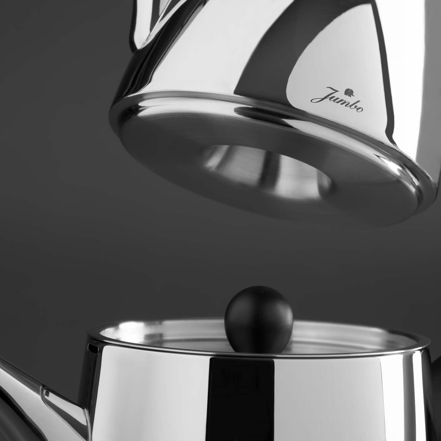 18/10 CR/Nİ paslanmaz çelikten gövdesi, vidasız monte edilmiş kulpları ile, Jumbo'nun zamansızlığını gözler önüne seriyor.