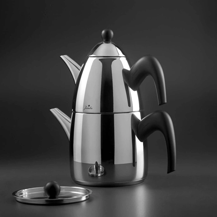 Jumbo 6500 siyah çaydanlık, çelik ile siyah rengin mükemmel uyumunu ortaya kokuyor. Her mutfağa uyum sağlamayı başaran bu uyum kullanıcılardan da tam not alıyor. Tasarımının yanı sıra sahip olduğu özelliklerle öne çıkmayı başaran çaydanlık, Jumbo kalitesini evinize ulaştırıyor. Siz de süzgecinden kulpuna, kapağından tabanına kadar incelikle düşünülmüş bu tasarıma web sitemiz üzerinden kolayca sahip olabilirsiniz. Jumbo 6500 siyah çaydanlık hakkında daha fazla bilgiye sahip olmak içinse sayfamızı inceleyebilirsiniz.