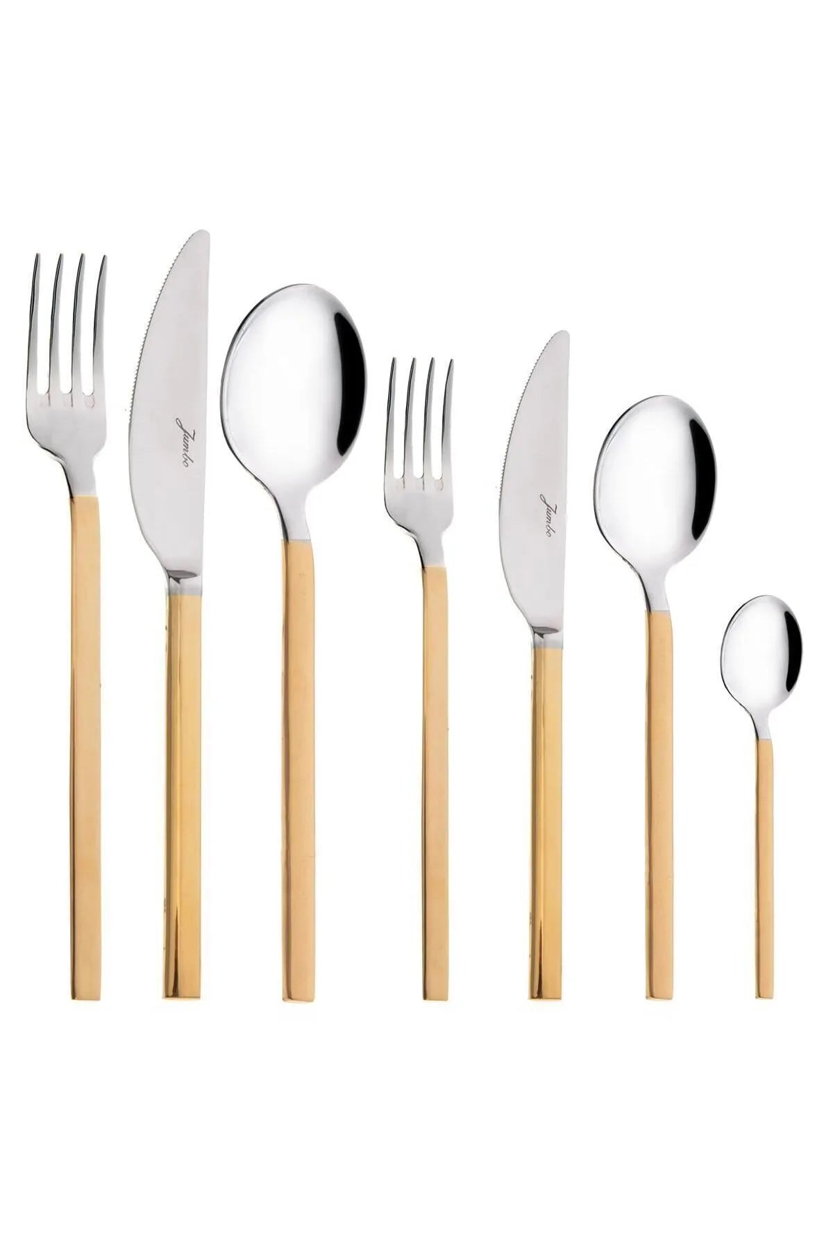 Standart ve geleneksel çatal kaşık bıçak takımlarından ziyade sofralarında daha farklı, daha özgün ve daha çağdaş tasarımlar görmek isteyenler, Jumbo 8100 12 kişilik gold çatal kaşık bıçak takımında aradıklarından çok daha fazlasını buluyor. Beklentileri fazlasıyla karşılayan bu takım, hem yemek hem tatlı setini bir arada barındırdığı için özellikle çeyizlik olarak harika bir alternatif sunuyor. Bununla birlikte günlük sofralarına şıklık katmak isteyenler, Jumbo dokunuşuyla bir üst seviyeye çıkan bu takımı kullanarak istisnasız her sofrayı bir şıklık yarışına çevirebiliyor. Elbette Jumbo 8100 altın çatal kaşık bıçak takımının davet masalarındaki yeri ise tartışmasız. Özellikle gold detaylı bardak takımları ve altın yaldızlı yemek takımları ile harika bir uyum sergileyecek olan bu takım, yemek yerken her lokmanızı daha keyifli ve daha lezzetli hale getirebilme potansiyelini bünyesinde taşıyor.
