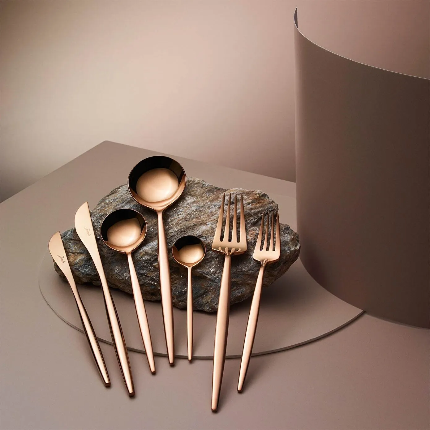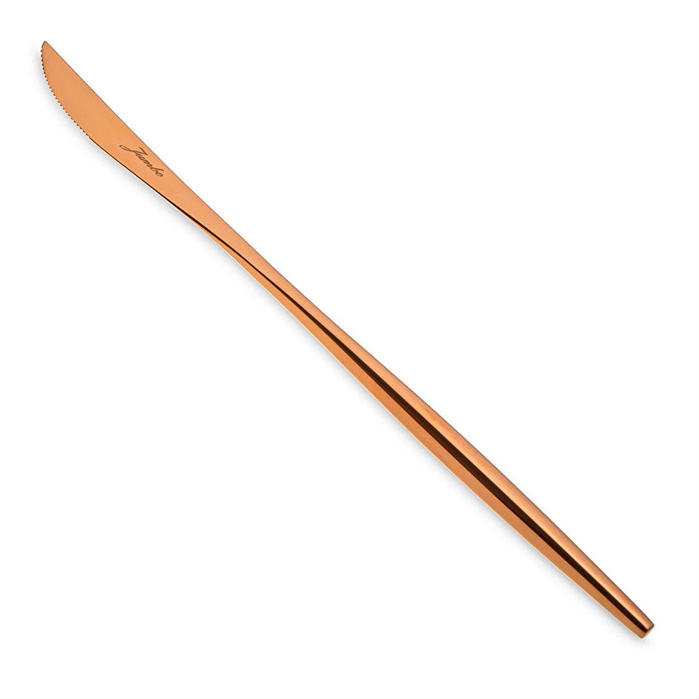 Geleneksel olarak silver renkte tasarlanan ve üretilen çatal kaşık bıçak takımlarına adeta meydan okuyan Jumbo 9000 bronz çatal kaşık bıçak takımı, ilk bakışta bronz rengi ile dikkatleri üzerine çekiyor. En modern sofra ve sunum dekorasyon trendlerinin öncü temsilcisi niteliğinde olan bu takım, bu harika rengi ile her sofranın yıldızı olmaya şimdiden aday. Özellikle modern tarzda ve trend çizgilerin hakim olduğu yemek takımlarınız varsa, bu fütüristik çatal kaşık bıçak takımını temin ederek harika bir bütün yaratabilirsiniz.