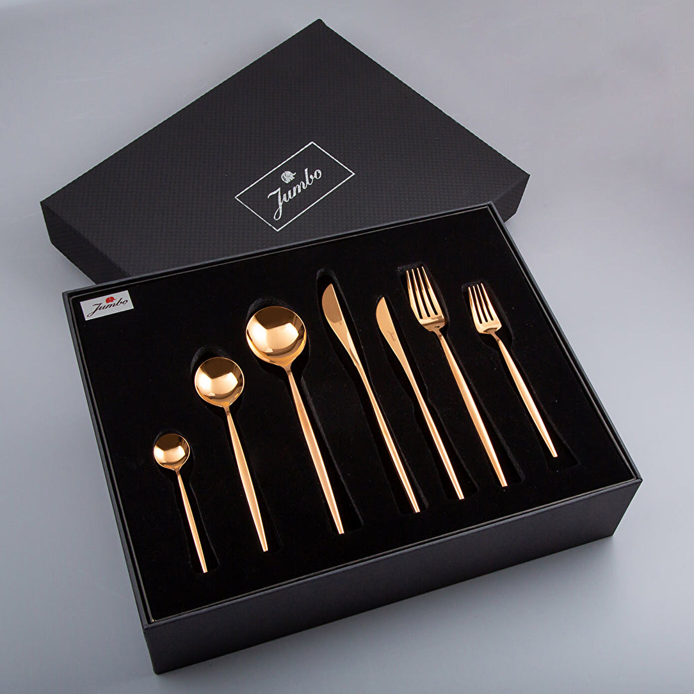 Sofralarına benzersiz bir şıklık katmak isteyenler aradıklarından çok daha fazlasını Jumbo 9000 titanyum bronz 12 kişilik 84 parça çatal kaşık bıçak takımını buluyor. Geleneksel çatal kaşık bıçak takımlarına meydan okuyan rengi ve tasarımıyla dikkatleri ilk bakışta üzerine çeken Jumbo 9000 titanyum bronz çatal kaşık bıçak takımı, üst düzey bir sofra düzeni arayanların beklentilerini fazlasıyla karşılamayı başarıyor.