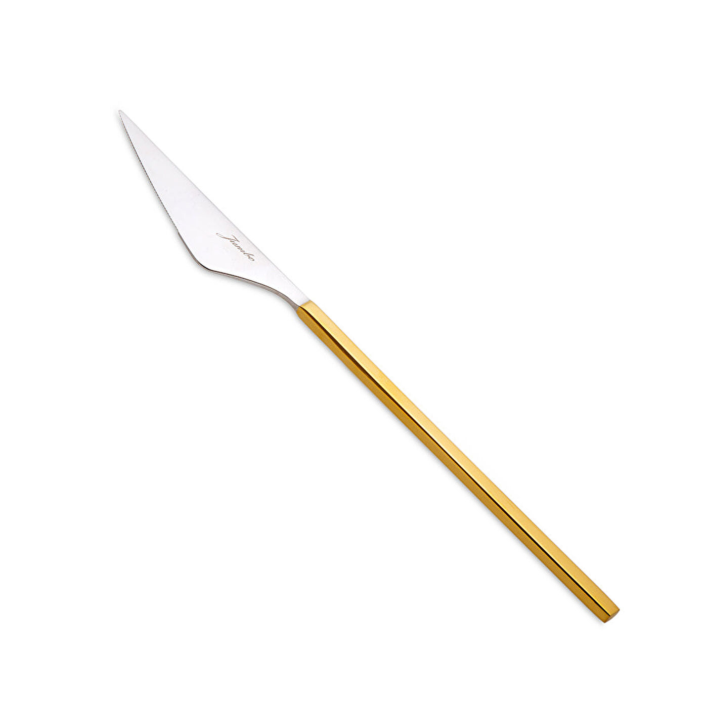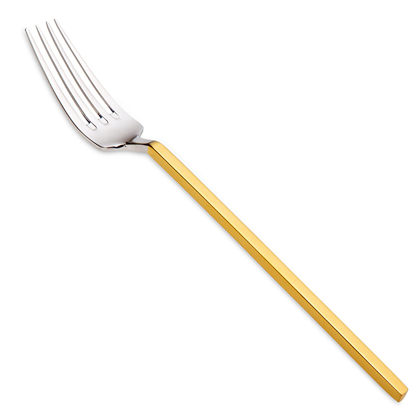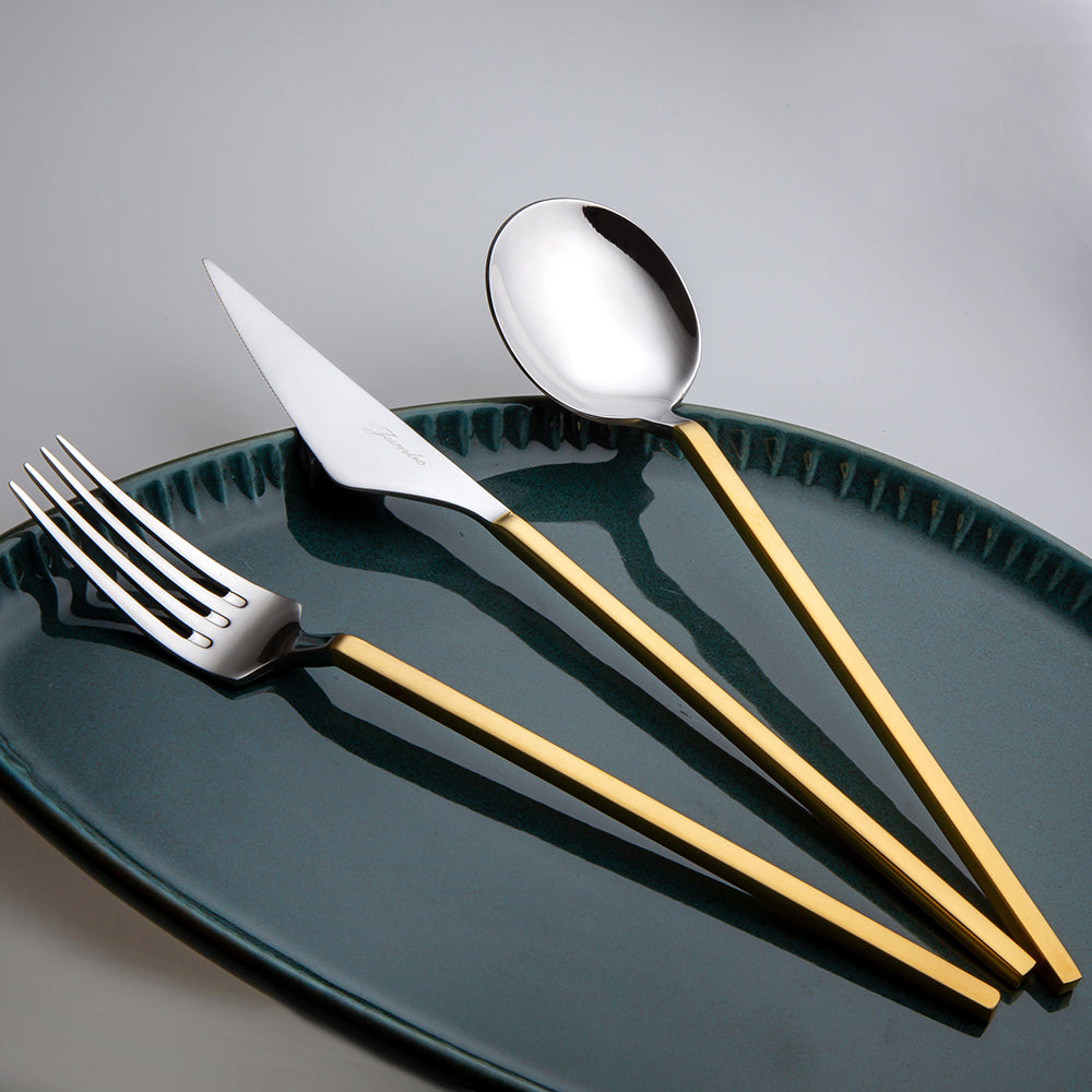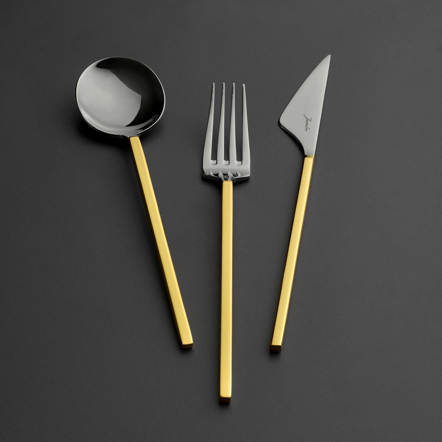 Geleneksel olarak tek renk olarak gümüş renkte üretilmesi tercih edilen çatal kaşık bıçak takımları, Jumbo 9100 altın çatal kaşık bıçak takımı ile bambaşka bir boyut kazanıyor. Hem gold hem silver tonların bir araya geldiği bu olağandışı tasarım, sofralara yerleştirildiği andan itibaren tüm konukları kendisine hayran bırakmayı garantiliyor. Üstelik form olarak köşeli ve kareli hatlara sahip olduğu için şekil itibariyle de klasik çatal kaşık bıçak takımlarına meydan okumayı başarıyor. Kısacası eşi benzeri olmayan bu takım, en modern sofraların baş tacı olmaya şimdiden aday.