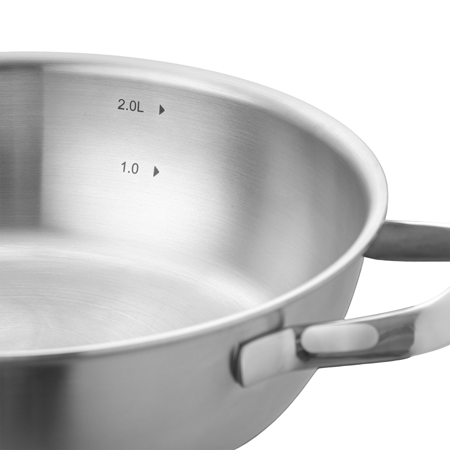 Paslanmaz çelik yüzey, tencerenin modern ve şık bir görünüme sahip olmasını sağlar, bu da mutfaklarda estetik açıdan hoş bir görüntü oluşturur.