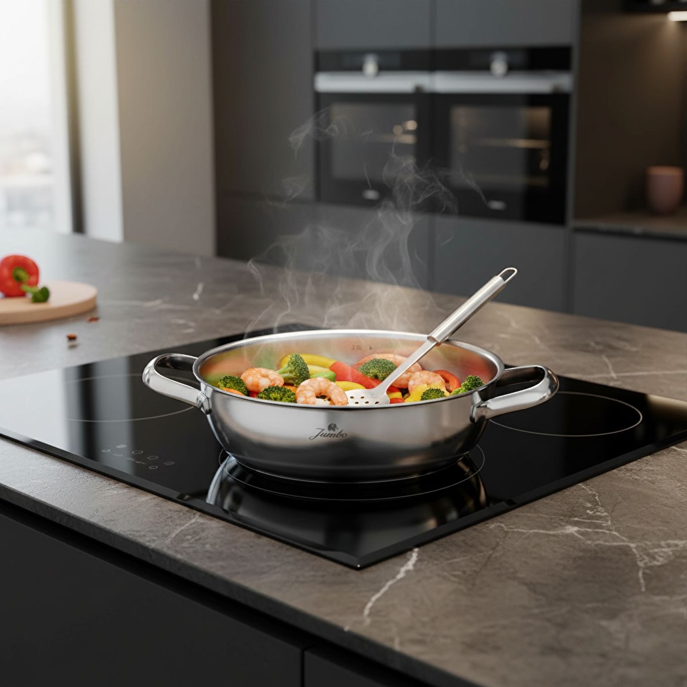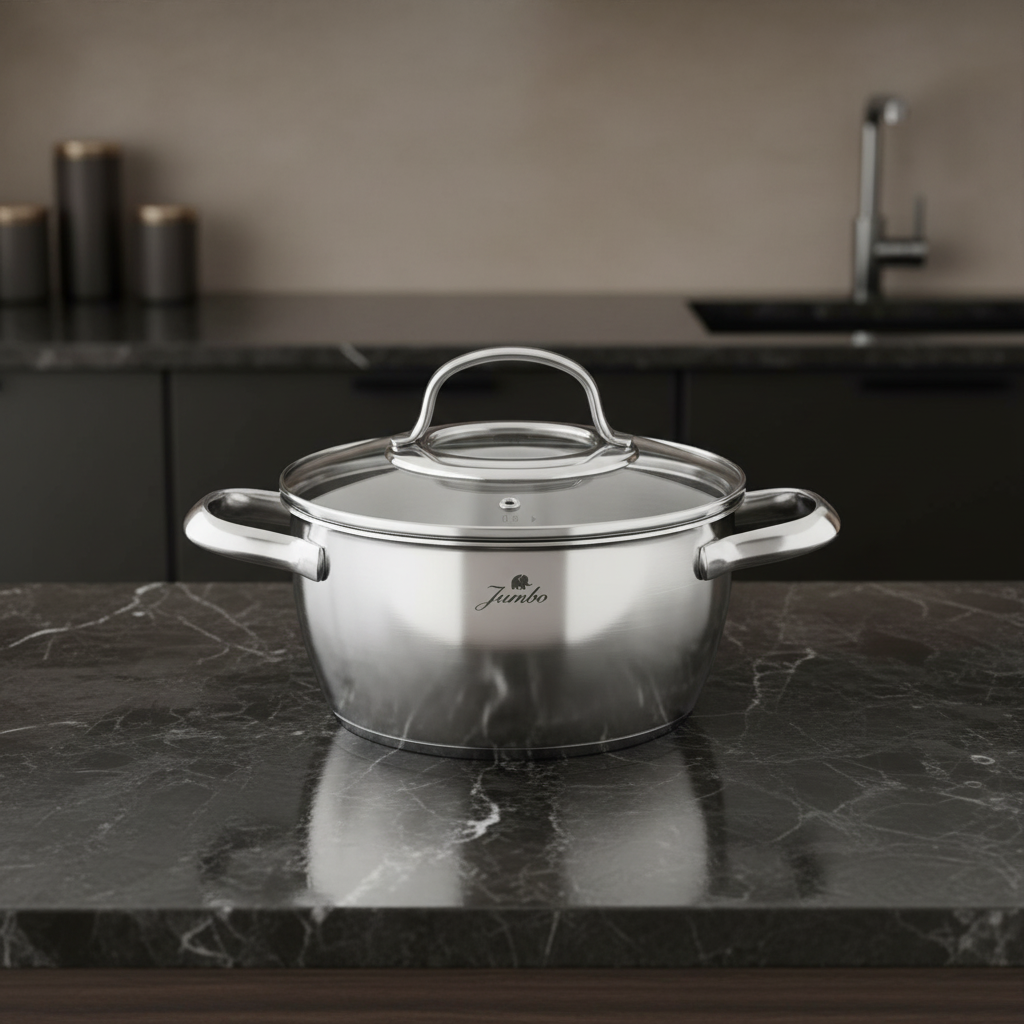 Jumbo 3 ply tencereler ısının hızlı ve eşit bir şekilde dağılmasını sağlar, bu da yemeklerin daha verimli bir şekilde pişmesini sağlar.