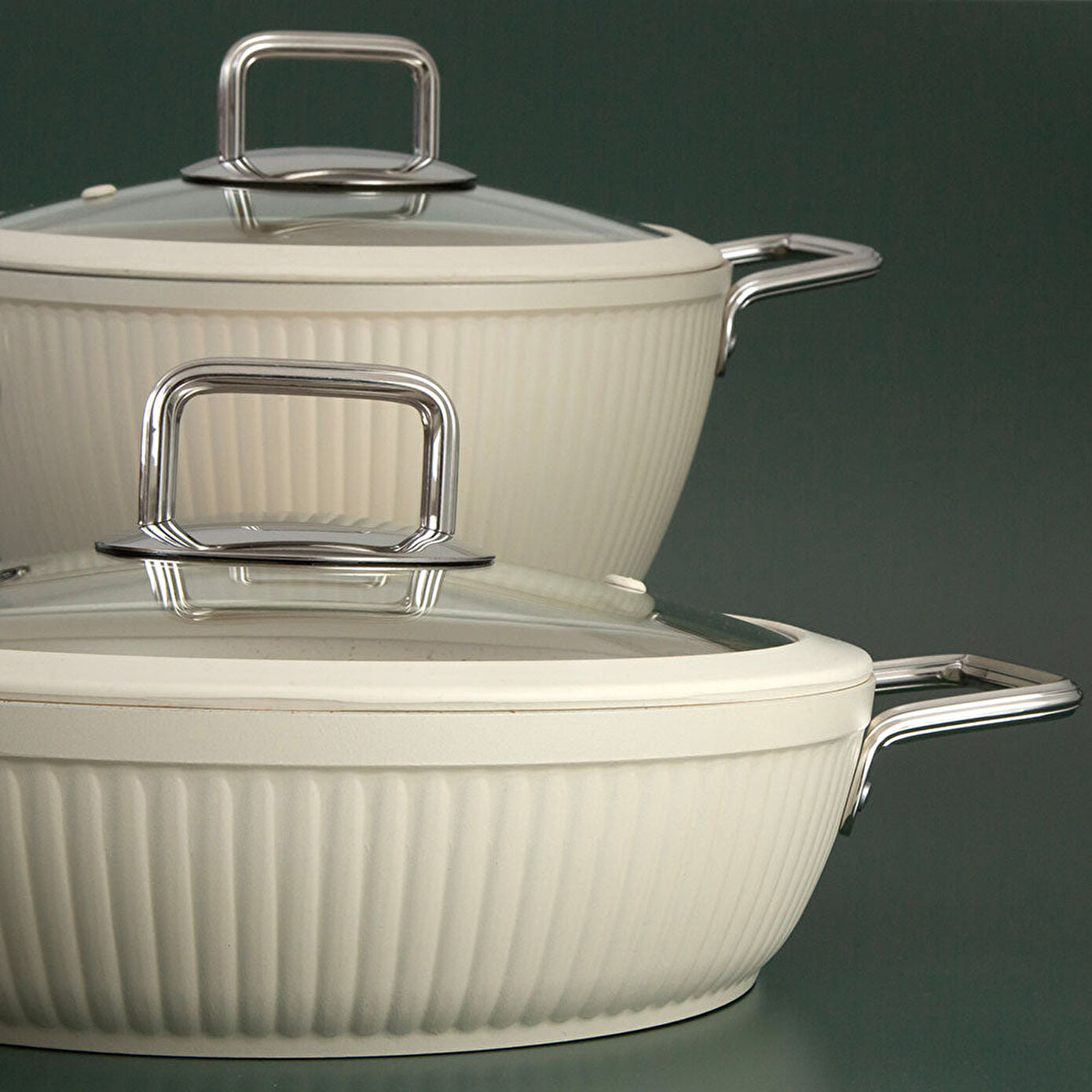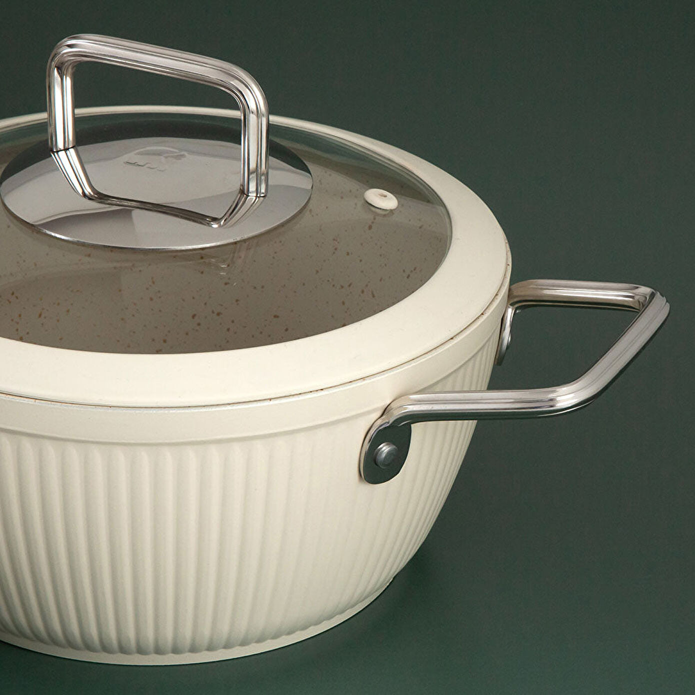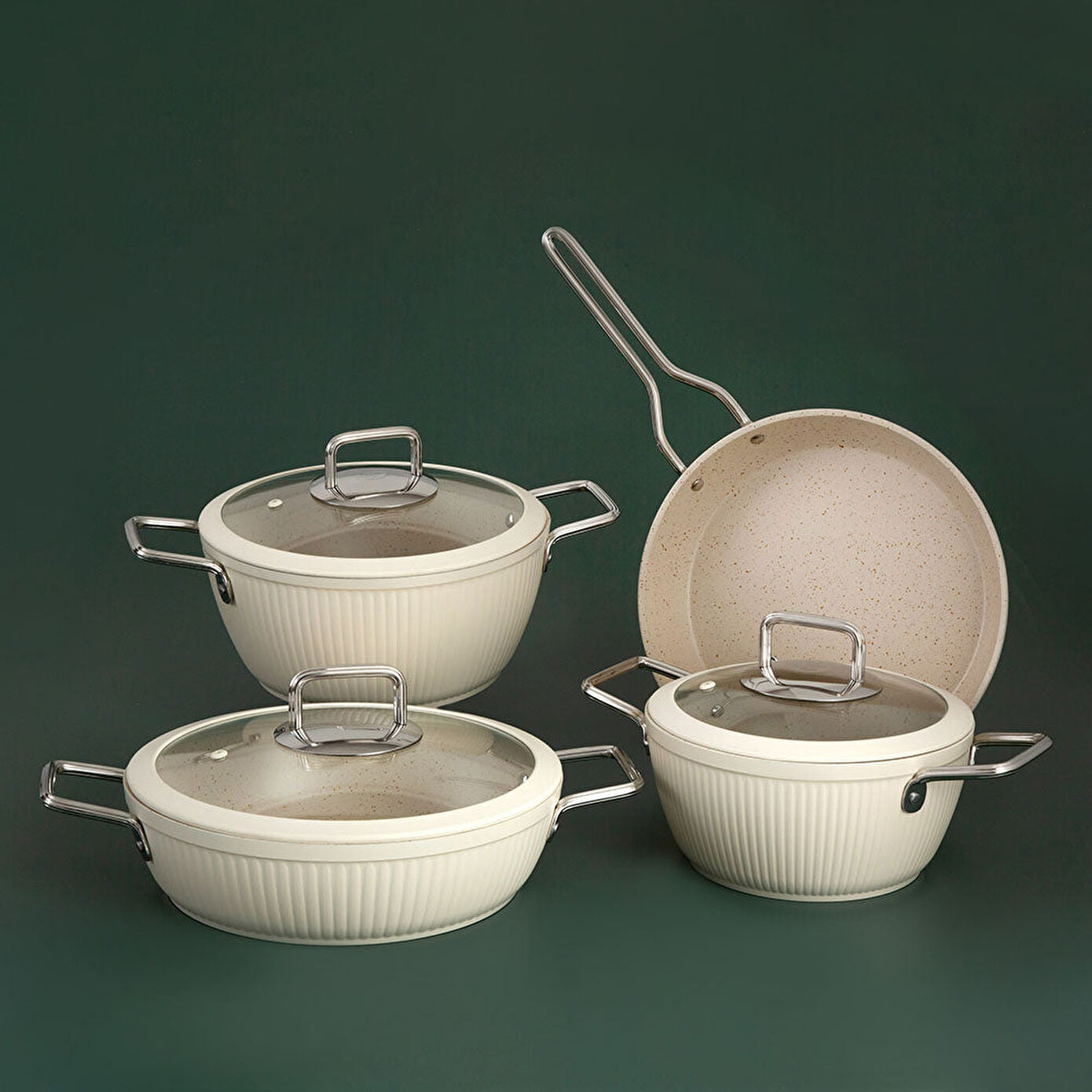 Jumbo Dublin Cream 7 Parça İndüksiyon Tabanlı Granit Tencere Seti
