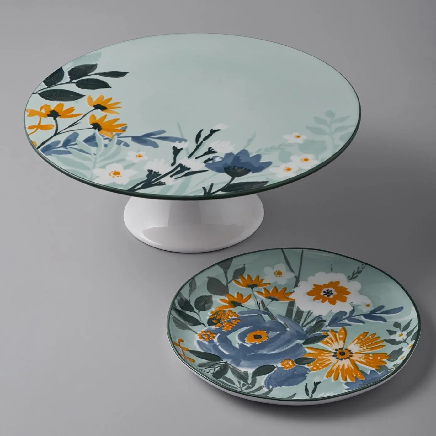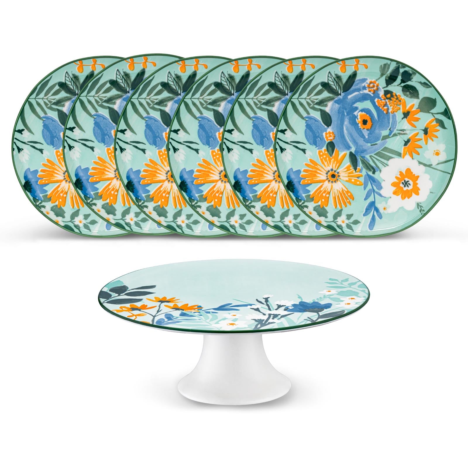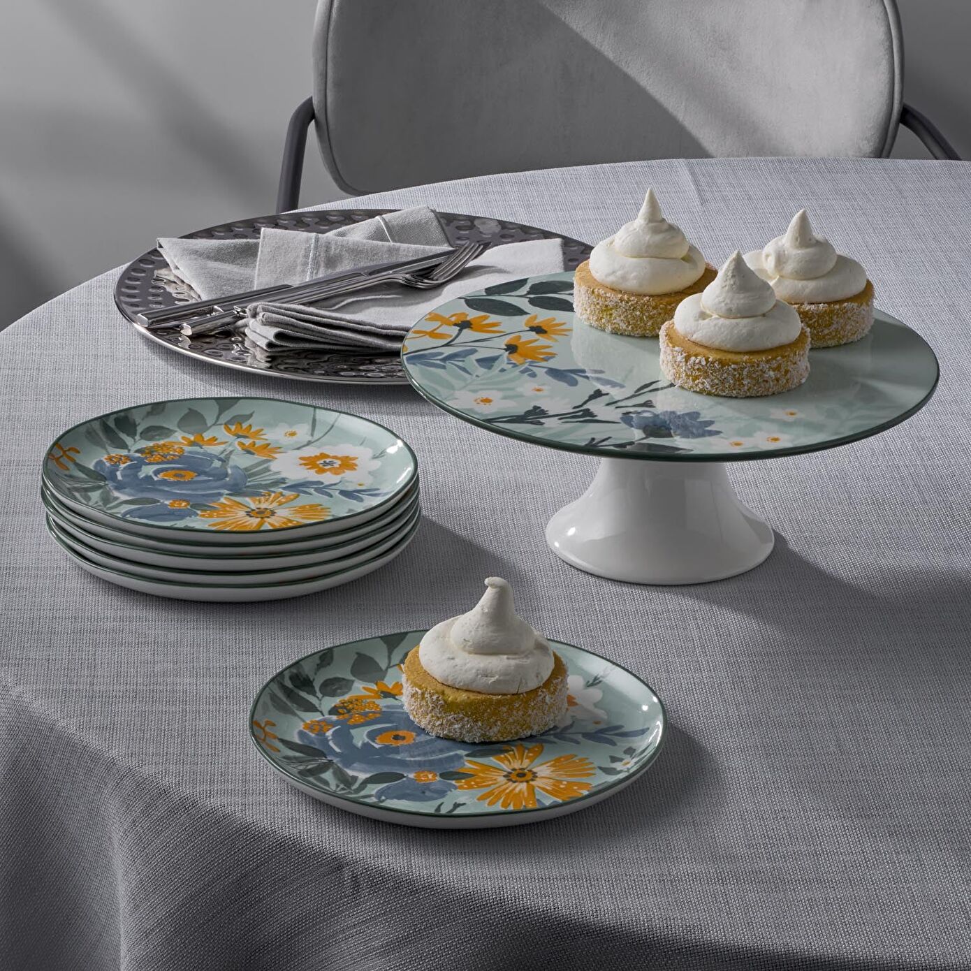 - 6 Adet Pasta Tabağı: Floral desenlerle süslenmiş yuvarlak tabaklar, her dilim pastayı estetik bir şekilde sunar.