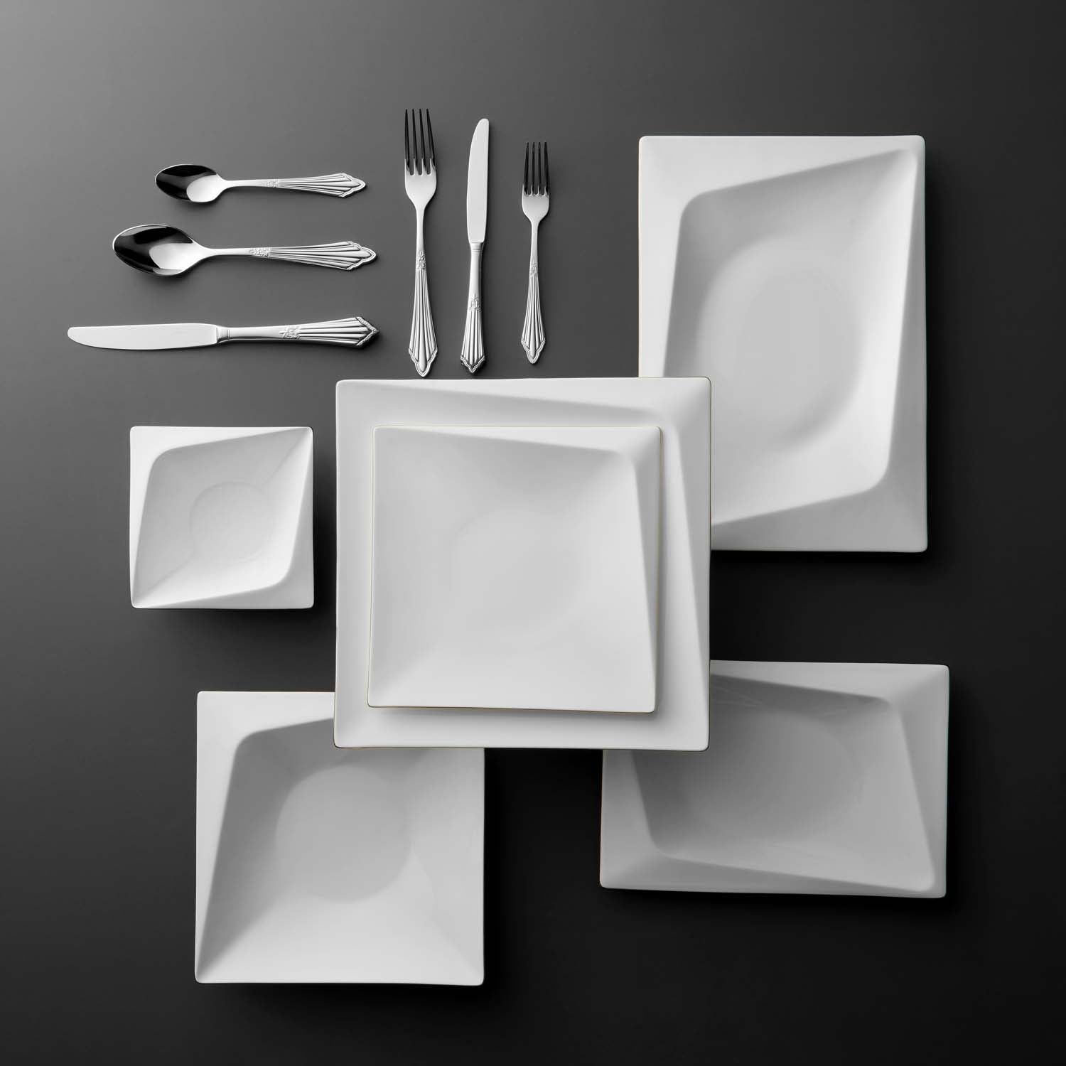 Jumbo Fold Platin 58 Parça 12 Kişilik Kare Yemek Takımı