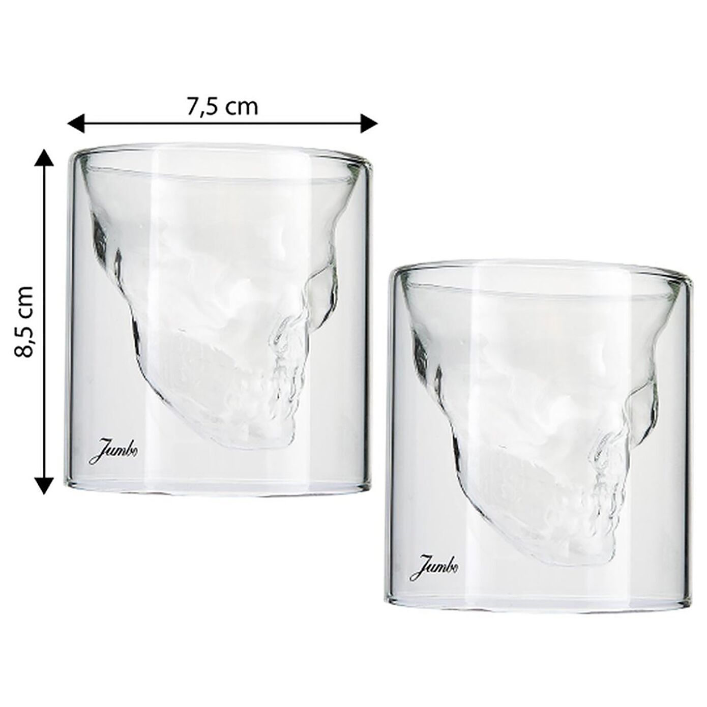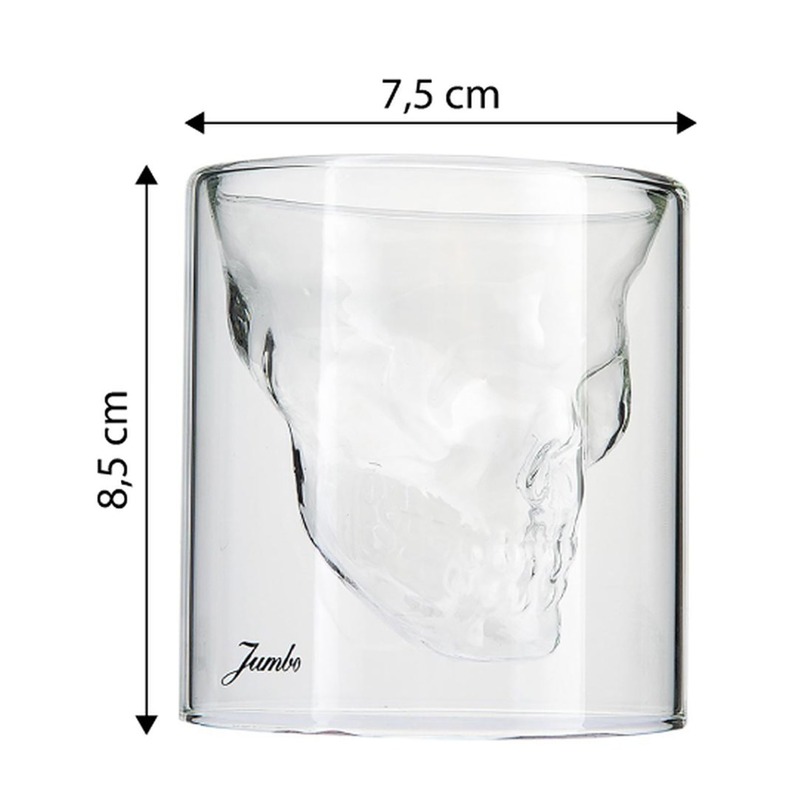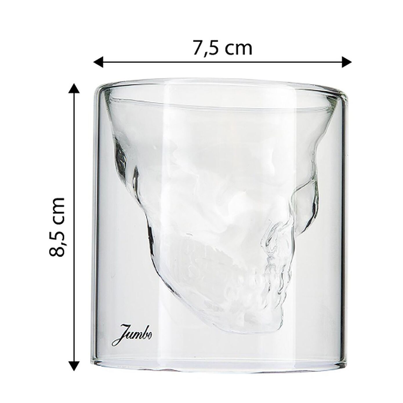Çift cidarlı yapısı sayesinde Jumbo Glory 2'li skull bardak seti, özel bir dış cama sahip olacak şekilde üretiliyor ve içerisindeki sıvının sıcaklığından bağımsız olarak rahat bir şekilde tutulabiliyor, el yakmıyor. Farklı ısılardaki içeceklerin servisinde rahatlıkla kullanılabilen bu set, shot bardağını anımsatan 150 ml'lik bir kapasiteye sahip. Dolayısıyla tek yudumda içilebilen alkollü ya da alkolsüz içeceklerin tüketimine elverişli olan bu ürün, içindeki özel kafatası şeklinde ikinci camıyla bir tasarım harikasına dönüşüyor. 2'li olan bu set, uzun süreli sıcaklık ve soğukluk sağlayarak kaliteli ve kalifiye bir içecek deneyimi vadediyor.