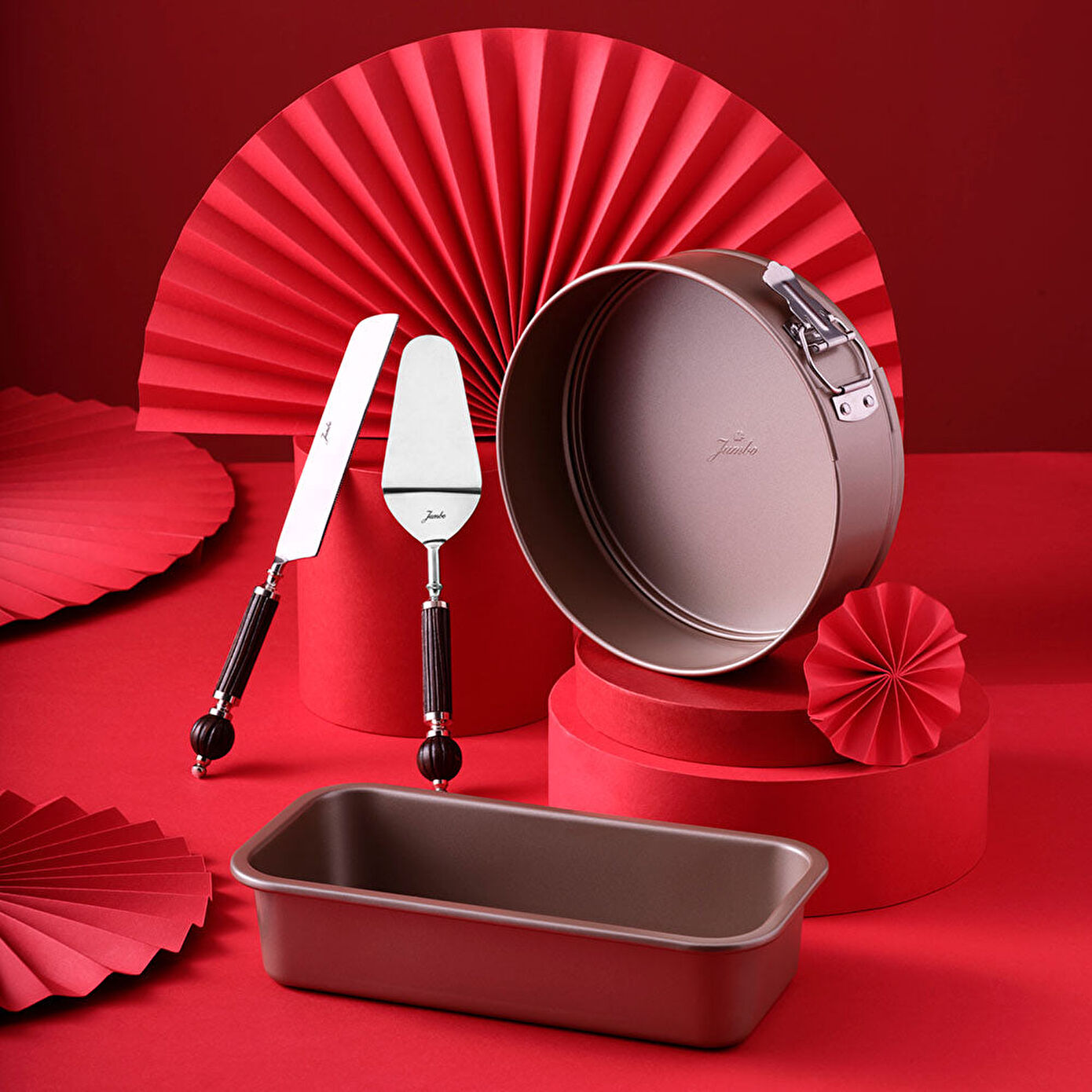 İşlevsellik bakımından tüketicisine oldukça pratik ve zahmetsiz bir kullanım sunan Jumbo altın baton kek kalıbı, bunu yaparken şıklığı da yabana atmıyor. Jumbo gold kek kalıbını kullanırken onun zarif altın renginden ve şık tasarımından faydalanarak hamur işi yapma süreçlerinizi daha keyifli hale getirebilirsiniz. Mutfağınız için şık ve pratik bir eklenti olacak bu kek kalıbı, karbon çelikten üretildiği için size aynı zamanda uzun süreli kullanım vaadi de veriyor. Daha uzun ömürlü bir kullanım için Jumbo baton kek kalıbının bulaşık makinesinden ziyade elde yıkanması tavsiye ediliyor. Yapışmaz ve yanmaz taban özelliğinin kaybolmaması için özellikle bulaşık teli gibi sert ovma ürünlerinin bu kek kalıbı üzerinde kullanılmaması öneriliyor. Siz de bu ufak nüanslara dikkat ettiğiniz sürece bu benzersiz ürünü uzun yıllar gönül rahatlığıyla kullanabilir, sevdiklerinize enfes ekmekler ve kekler pişirmenin keyfini çıkarabilirsiniz. Daha fazla kek kalıbı modeli için Kek Kalıbı kategorimizi ziyaret edebilirsiniz.