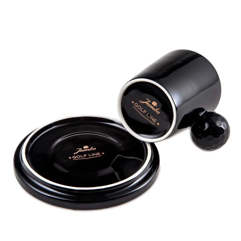 Jumbo Golf Line Siyah 2'li Tabaklı Kahve Fincan Takımı 90 ml