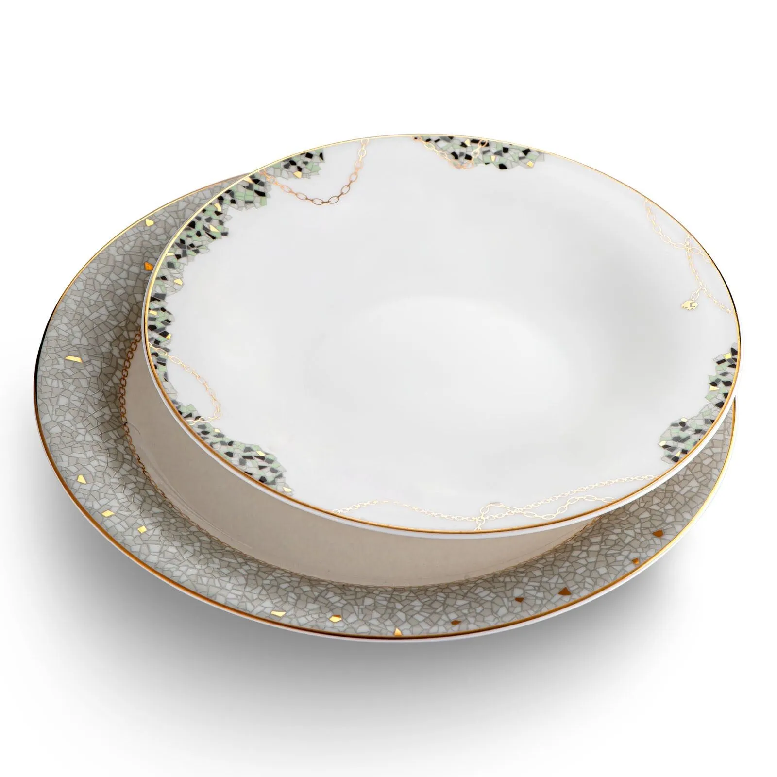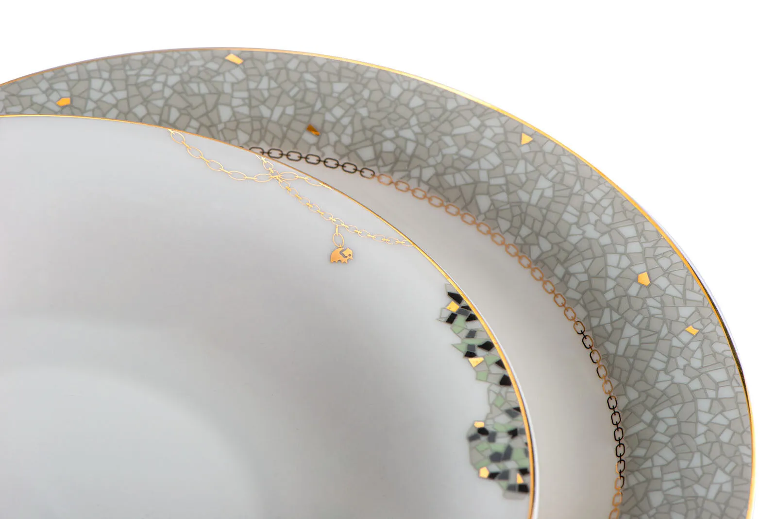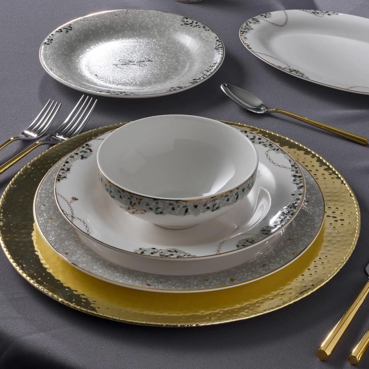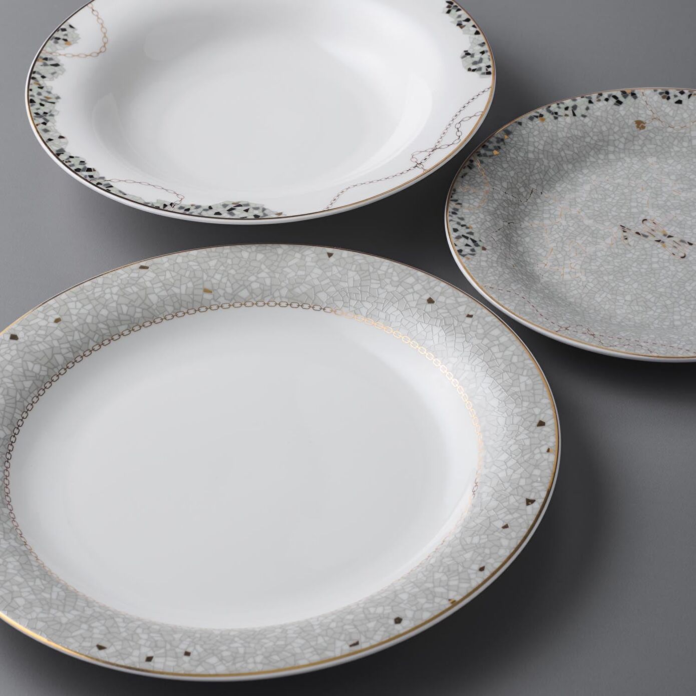 - Multicolor Tasarım: Gri tonlarının modern görünümü ve renkli detayları sofralarınıza hareket katar.