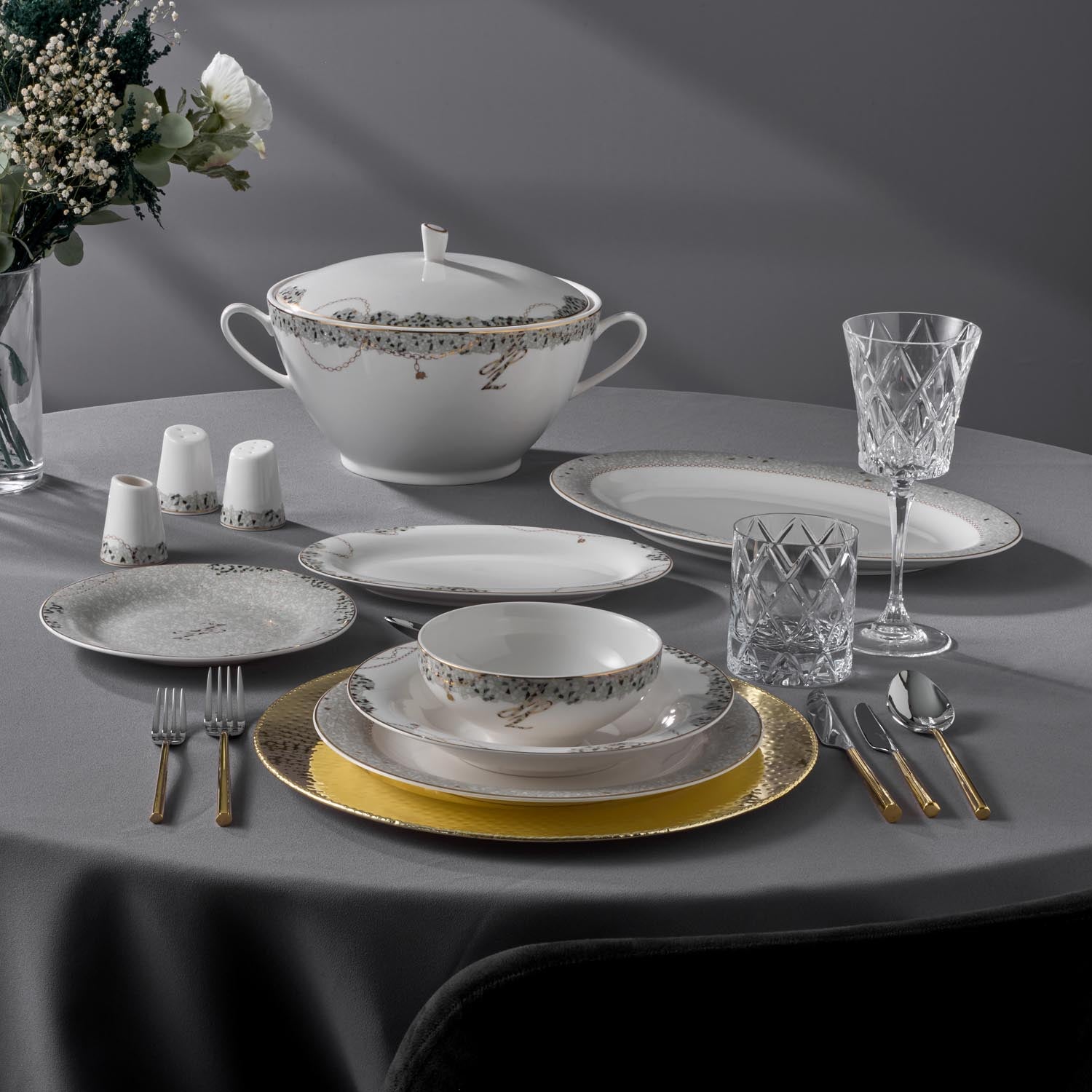 Toplamda 60 parçadan oluşan bu takım, 12 kişilik kapasitesiyle geniş aile sofraları ve özel davetler için idealdir: