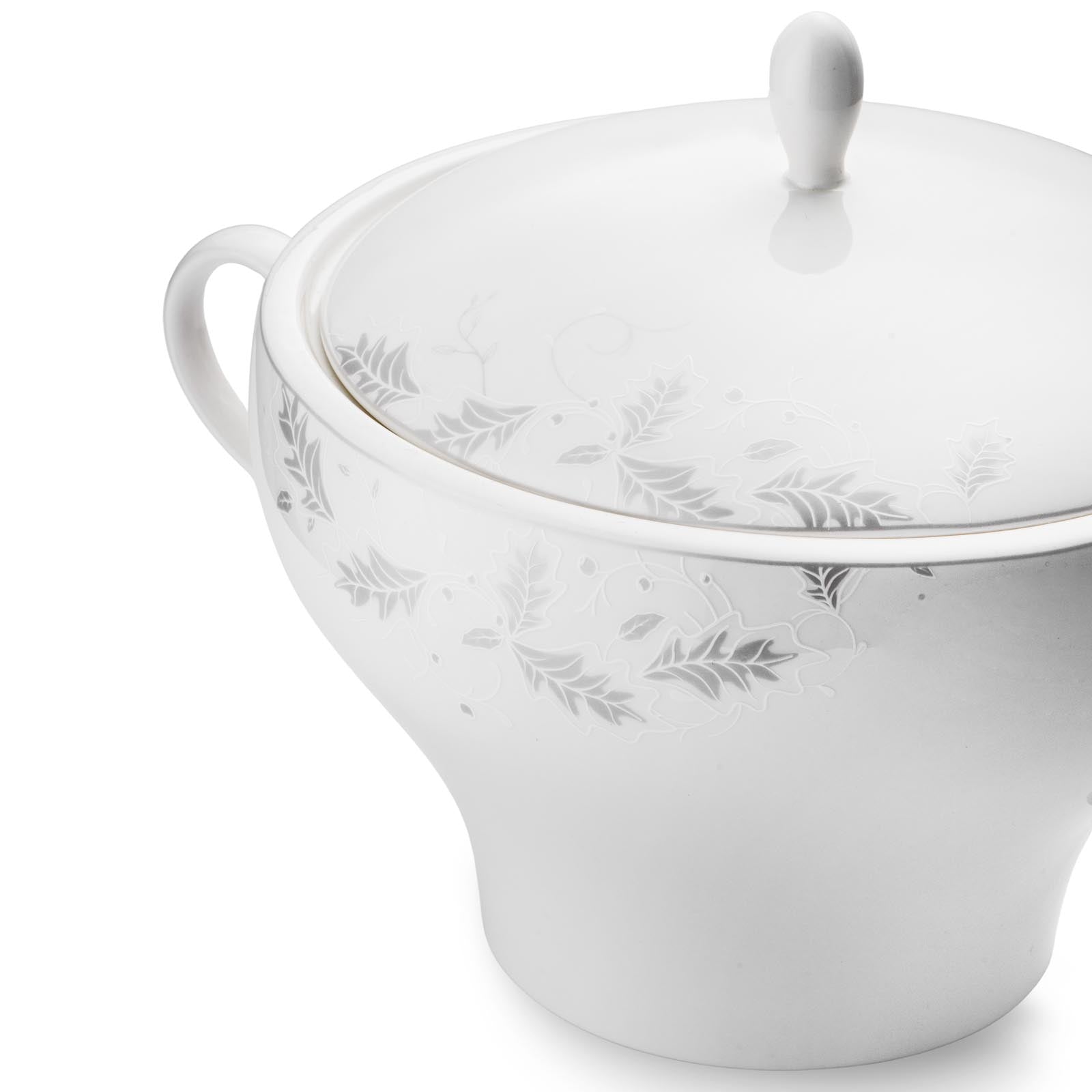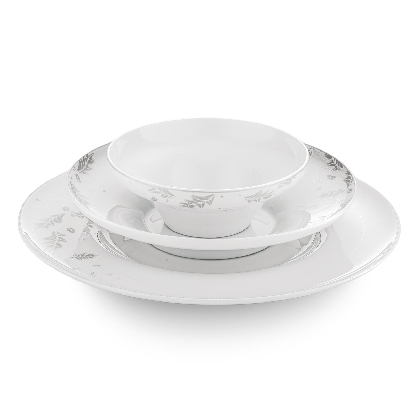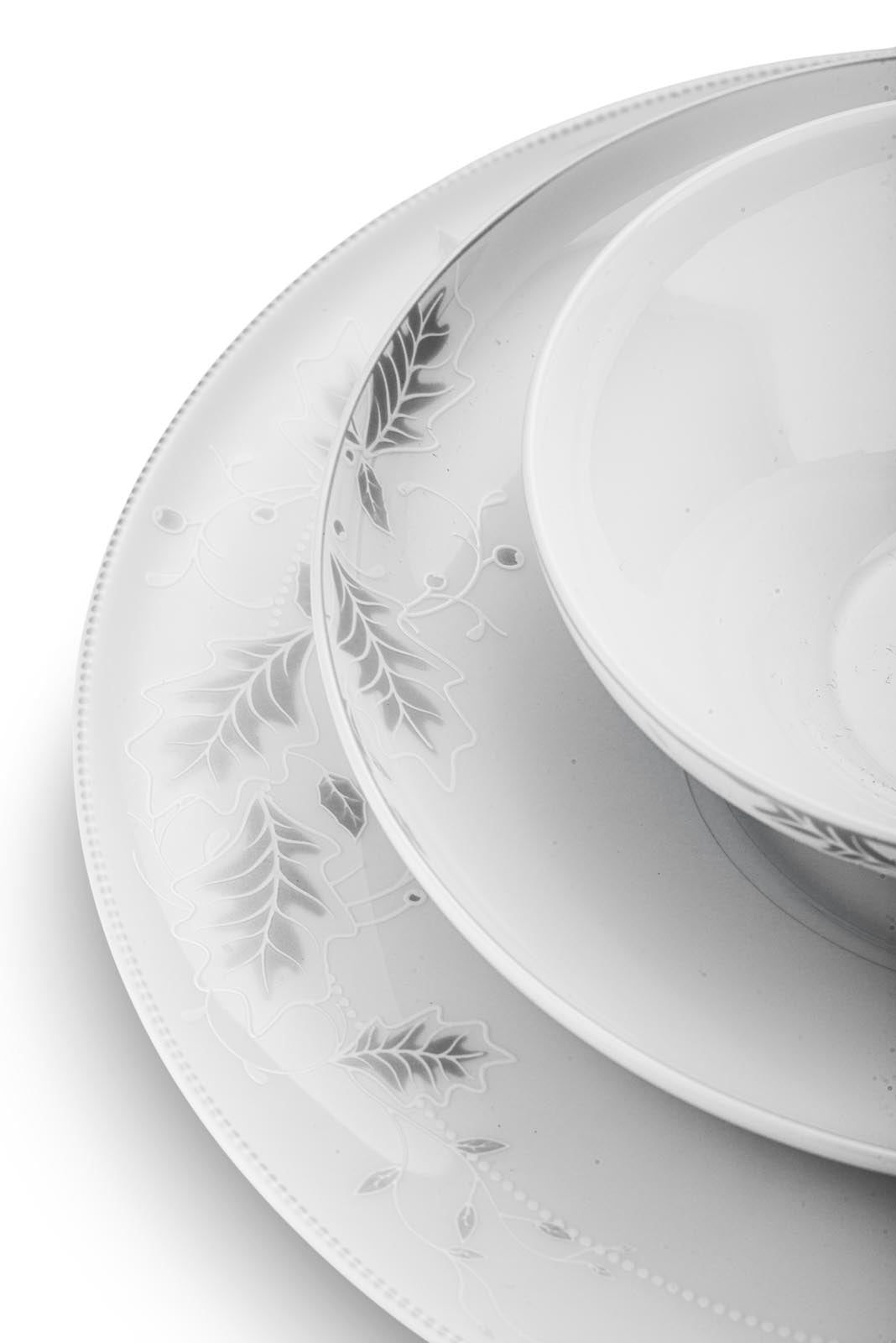 Jumbo Lace Leaf Yemek Takımı, her türlü sofra düzenine zarif bir dokunuş katarken, Fine Bone porselenin dayanıklılığı ile uzun yıllar kullanıma uygundur. Hem özel davetlerinizde hem de günlük sofralarınızda şıklığınızı yansıtacak bu takım, yemeklerinizi en güzel şekilde sunmanıza yardımcı olacak.