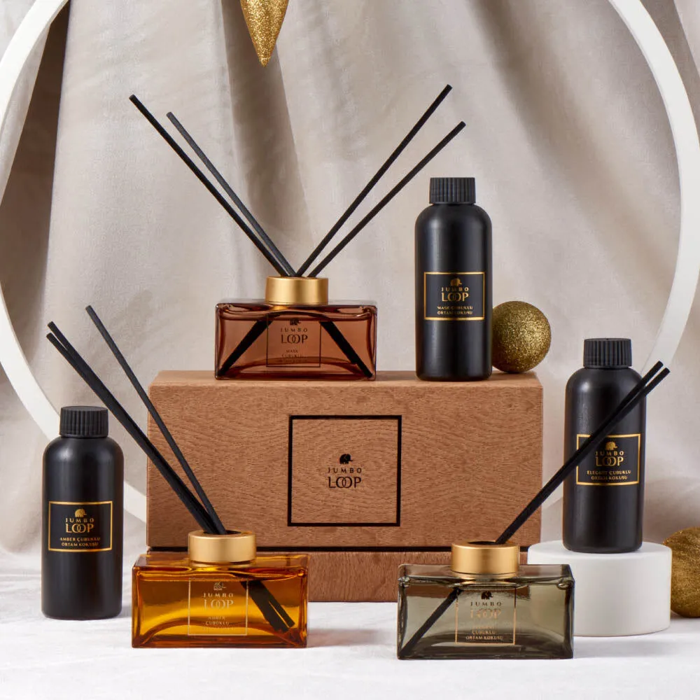 Jumbo Loop Elegant çubuklu ortam kokusunun üst notasında bergamot, kakule ve Pelin otu; orta notasında lavanta, sardunya ve portakal çiçeği; dip notasında ise tonka fasulye, ambergriss ve vanilya yer alıyor. Portakal çiçeklerinin egzotik ve hafif sıcak dengesi açıkça hissedilirken lavantanın mistik kokusu negatif enerjilerin yatıştırılmasında son derece etkili oluyor. Bunun yanı sıra tonka fasulyesinin tatlımsı ve aynı zamanda baharatlı aroması vanilyayla buluştuğunda neredeyse bağımlılık yapıyor. Ürünü kullanmaya başlamadan önce yedek şişedeki kokuyu cam şişeye aktarın. Daha sonra cam şişe içinde yer alan Elegant çubuklu ortam kokusunun fiber çubuklarını da şişeye yerleştirin. Çubuklar, kokuyu on iki saat içinde tamamen emecektir. Eğer çubuklar kurursa onları ters çevirip kokunun daha hızlı yayılmasına yardımcı olabilirsiniz. Siz de Jumbo Loop Elegant çubuklu ortam kokusunu tercih ederek gerek evinizin gerekse ofisinizin harika kokmasını sağlayın.