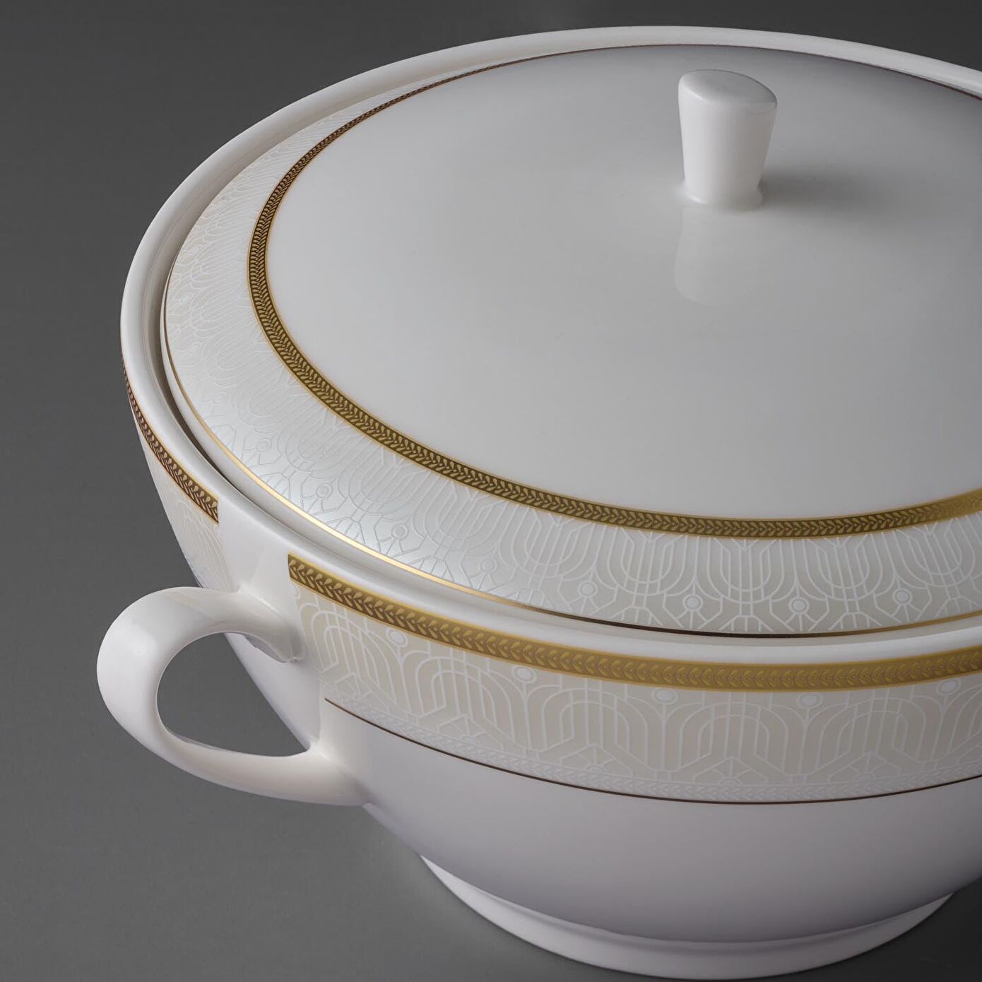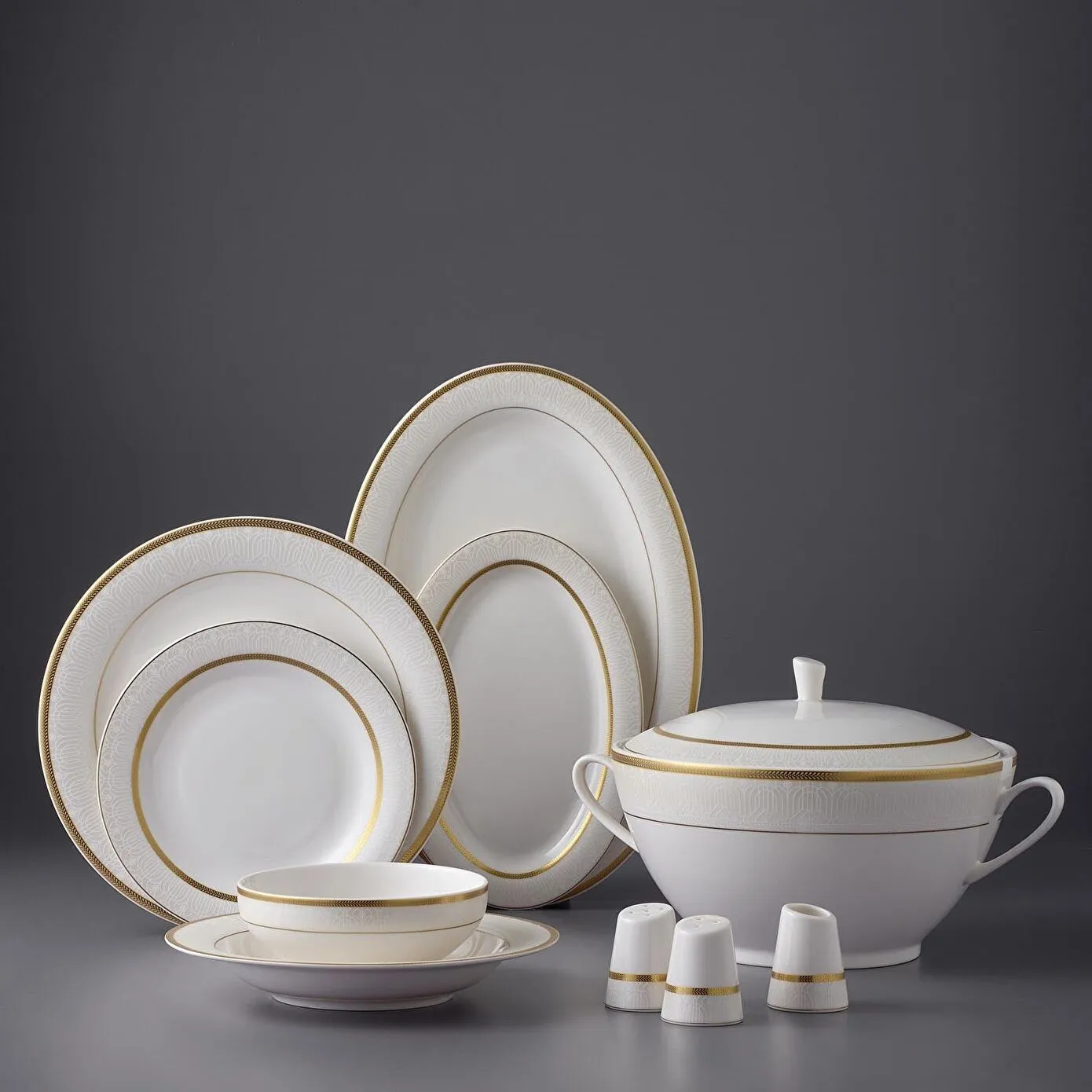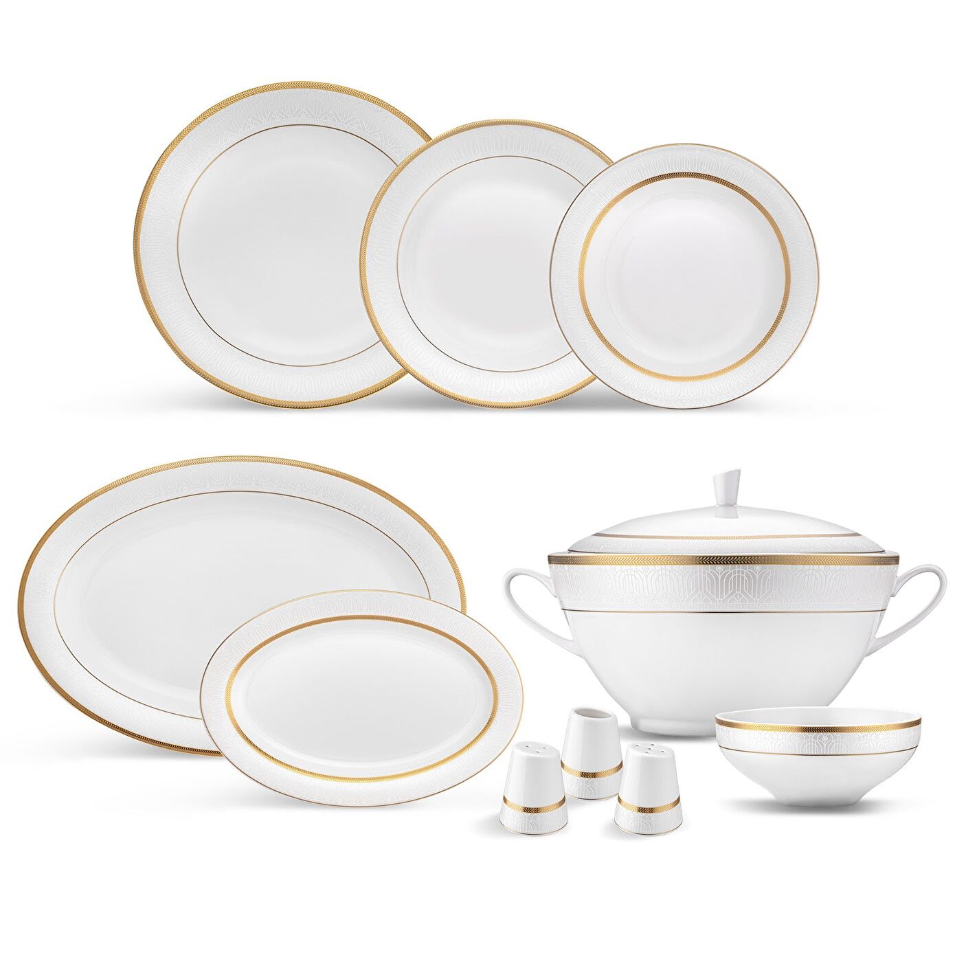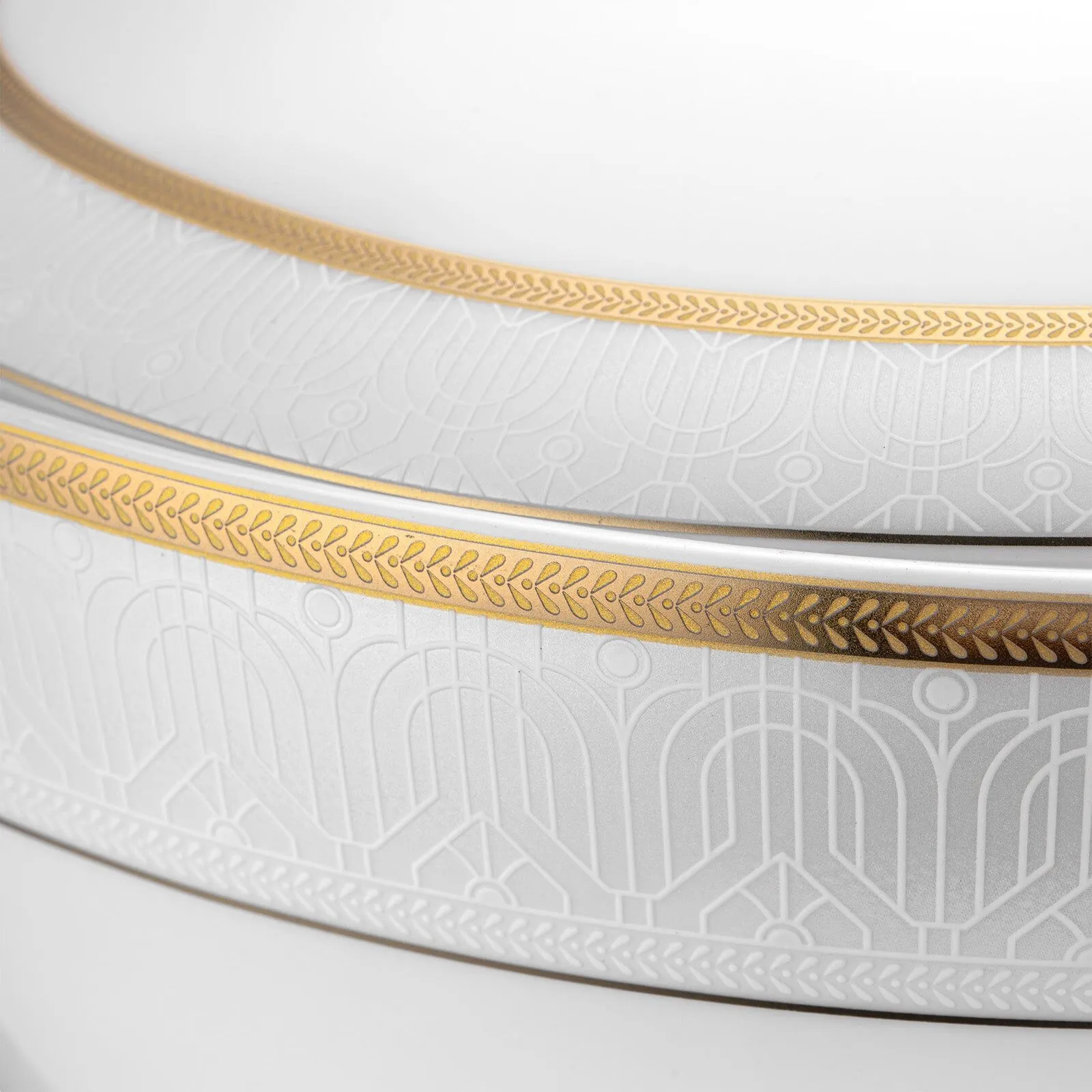 - Altın Detaylar: Beyaz zemin üzerine zarif altın dokunuşlar, sofralarınıza lüks ve modern bir görünüm kazandırır.