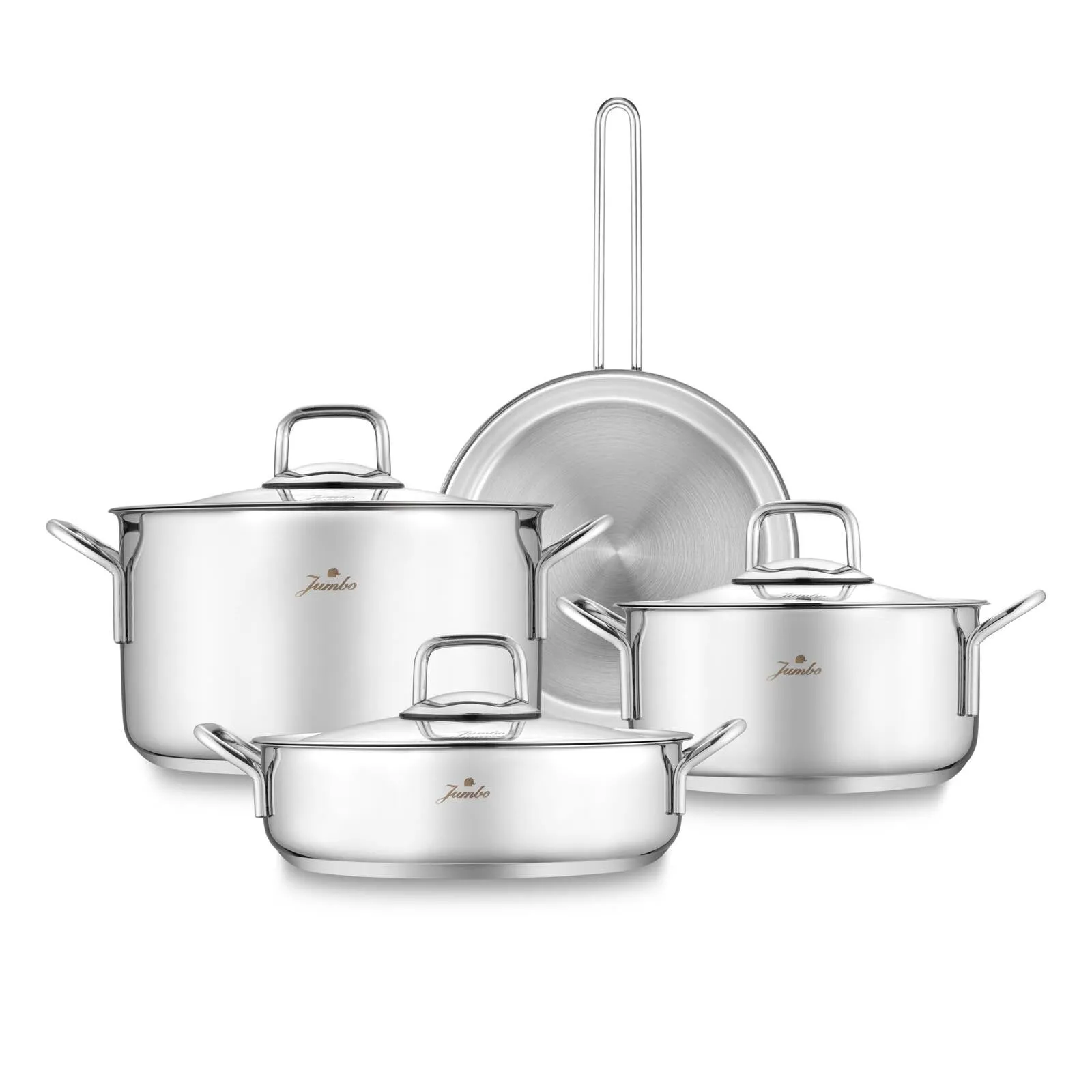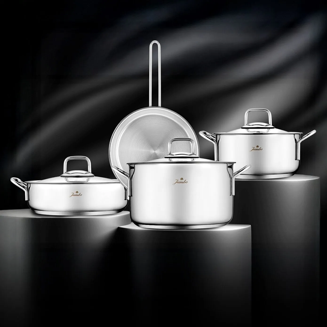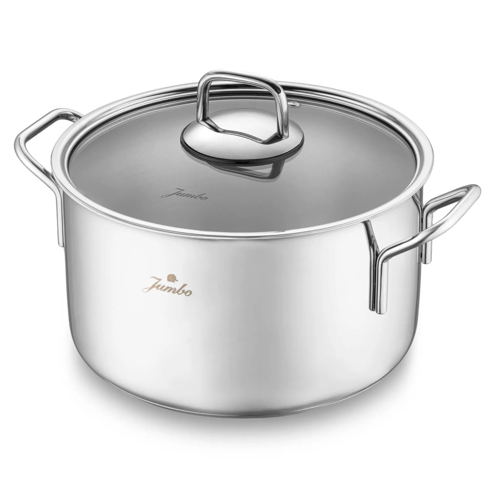 Jumbo Lyon tencere takımı kullanışlı içeriğinin yanı sıra estetik tasarımıyla da farkını hissettiriyor. Çelik ışıltısını ihtişamlı bir biçimde yansıtan tutma kulpları ve klasik pişirme gereci stilini andıran kapak tasarımı mutfakta fark yaratıyor. Tencere seçimi konusunda kullanımın yanında estetik unsurlarda öncelikli kriterleriniz arasındaysa Lyon tencere seti tam size göre! Hem zengin görünümlerin ön planda olduğu klasik mutfak dekorasyonları hem modern mutfak görünümleri için bu seti sepetinize ekleyebilirsiniz. Uzun ömürlü kullanım ve dayanıklılık vazgeçilmez kriterinizse yine Jumbo Lyon tencere seti! 304 paslanmaz çelik iç yüzey ve 430 paslanmaz çelik dış yüzeye sahip olan Lyon tencereleri, uzun süreli kullanımda dahi ilk günkü gibi kalıyor. Yemeklerinizi sağlıkla ve kusursuz biçimde hazırlamanın tanı Lyon tencere setinin üstün kaliteli materyalinde gizli. Konuklarınızı mest edecek lezzetlerin mimarı olmak istiyorsanız Lyon tencere setini sakın kaçırmayın! Mutfağınızı zenginleştirecek diğer pişirme gereçleri için sitemizdeki ilgili kategorileri ziyaret edebilirsiniz.