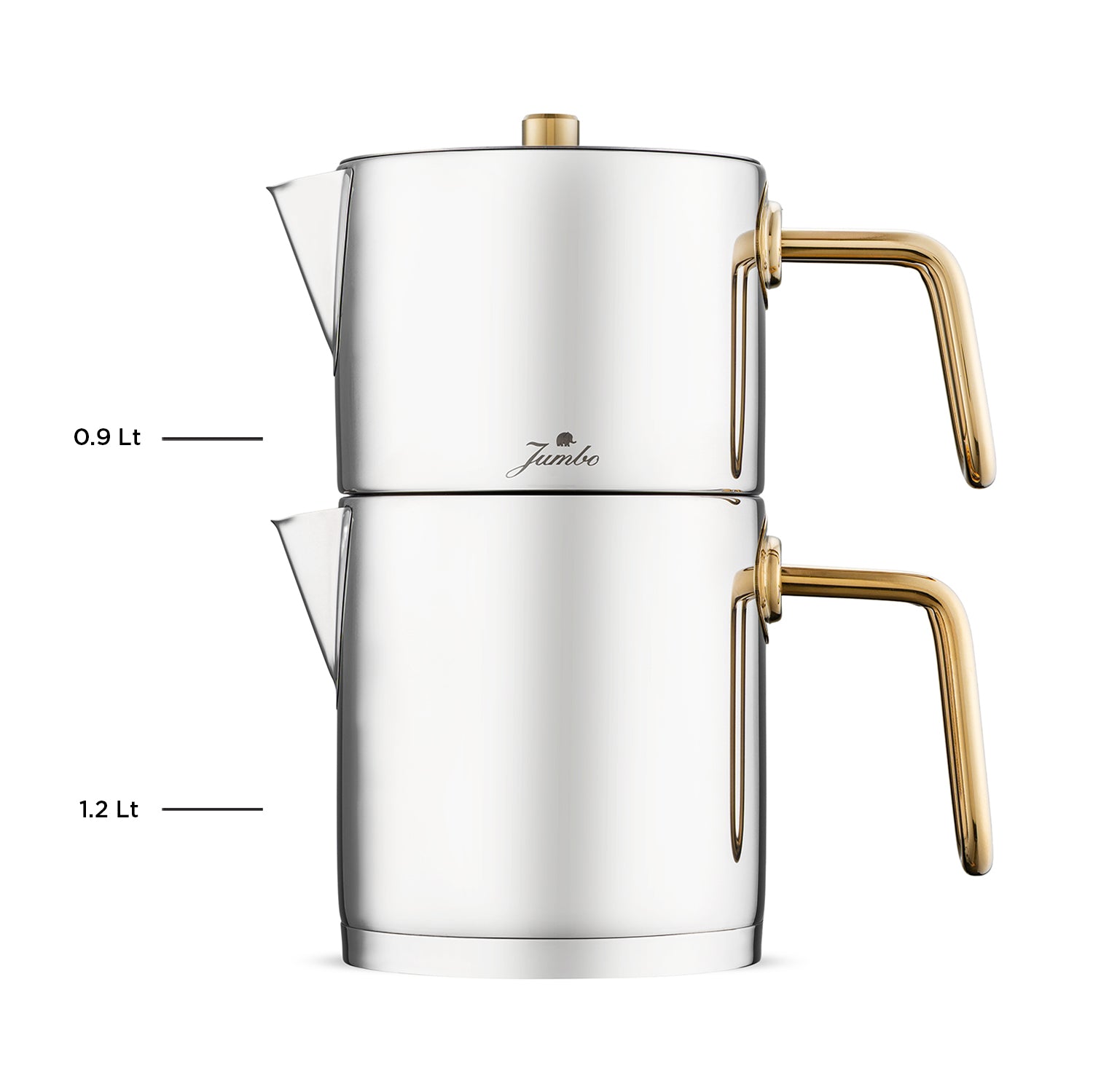 Gümüş ve Altın Uyumu: Jumbo Metalix Çaydanlık Titanyum Gold