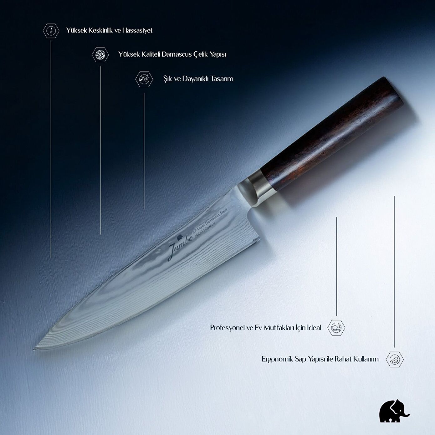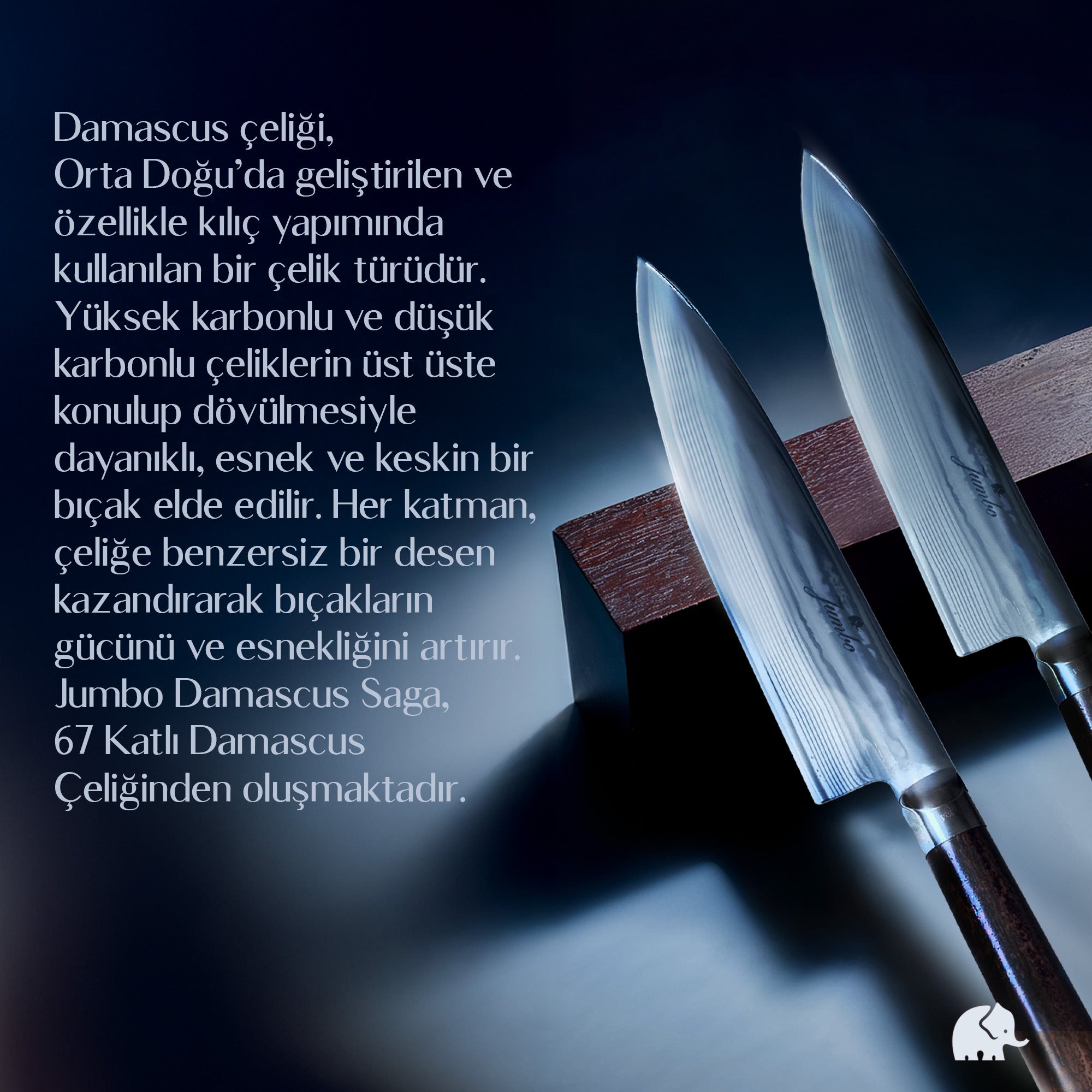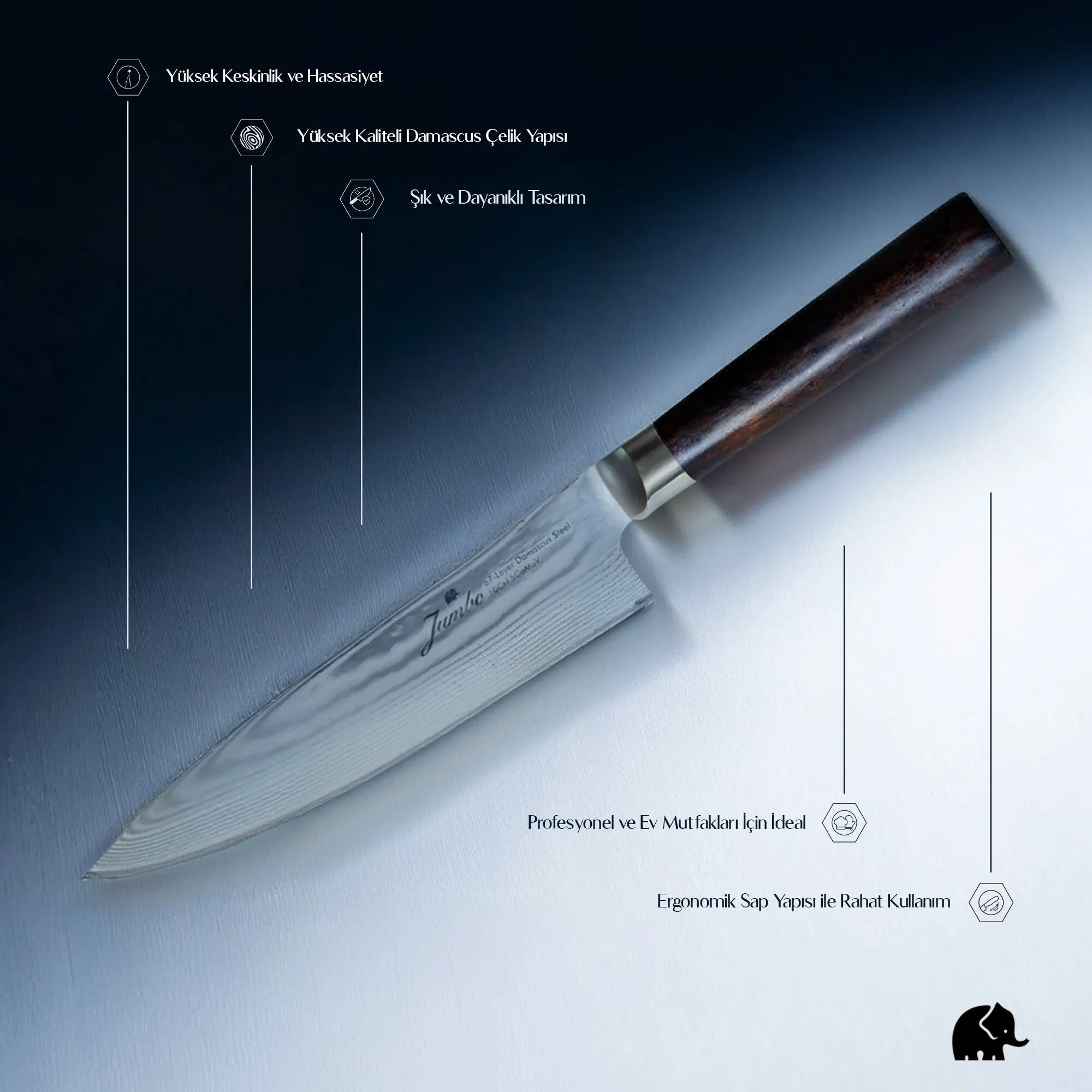 - 67 Katlı damascus çeliğinden oluşmaktadır.
