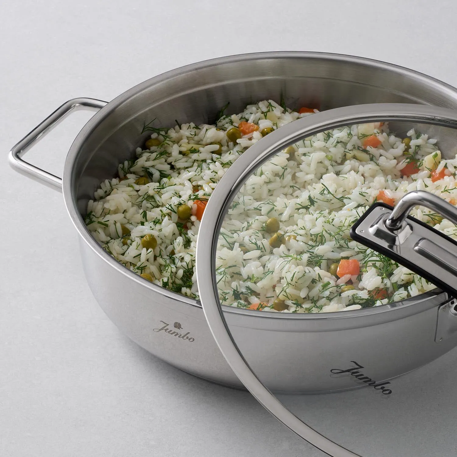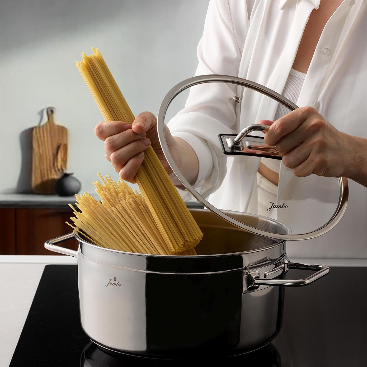 Çeliğin sağlam yapısını sofistike bir tasarımla harmanlayan Jumbo Modena Tencere Seti, mutfakta ihtiyaç duyduğunuz dayanıklılığı ve zarafeti bir araya getiriyor. Günlük yemeklerinize güç, özel tariflerinize estetik dokunuşlar eklemek için mükemmel bir tercihtir.