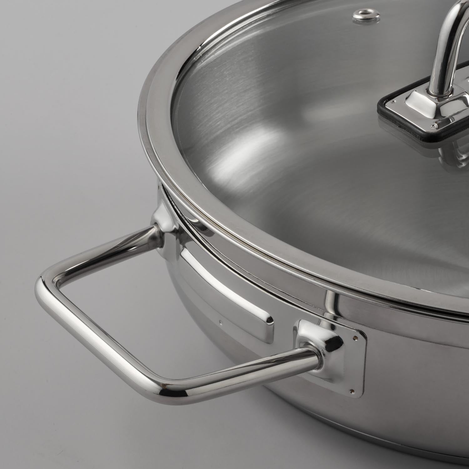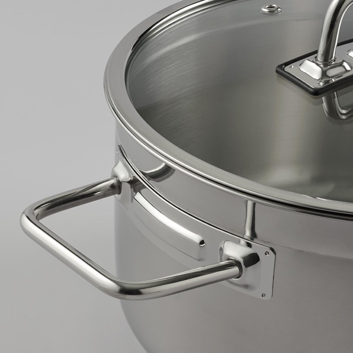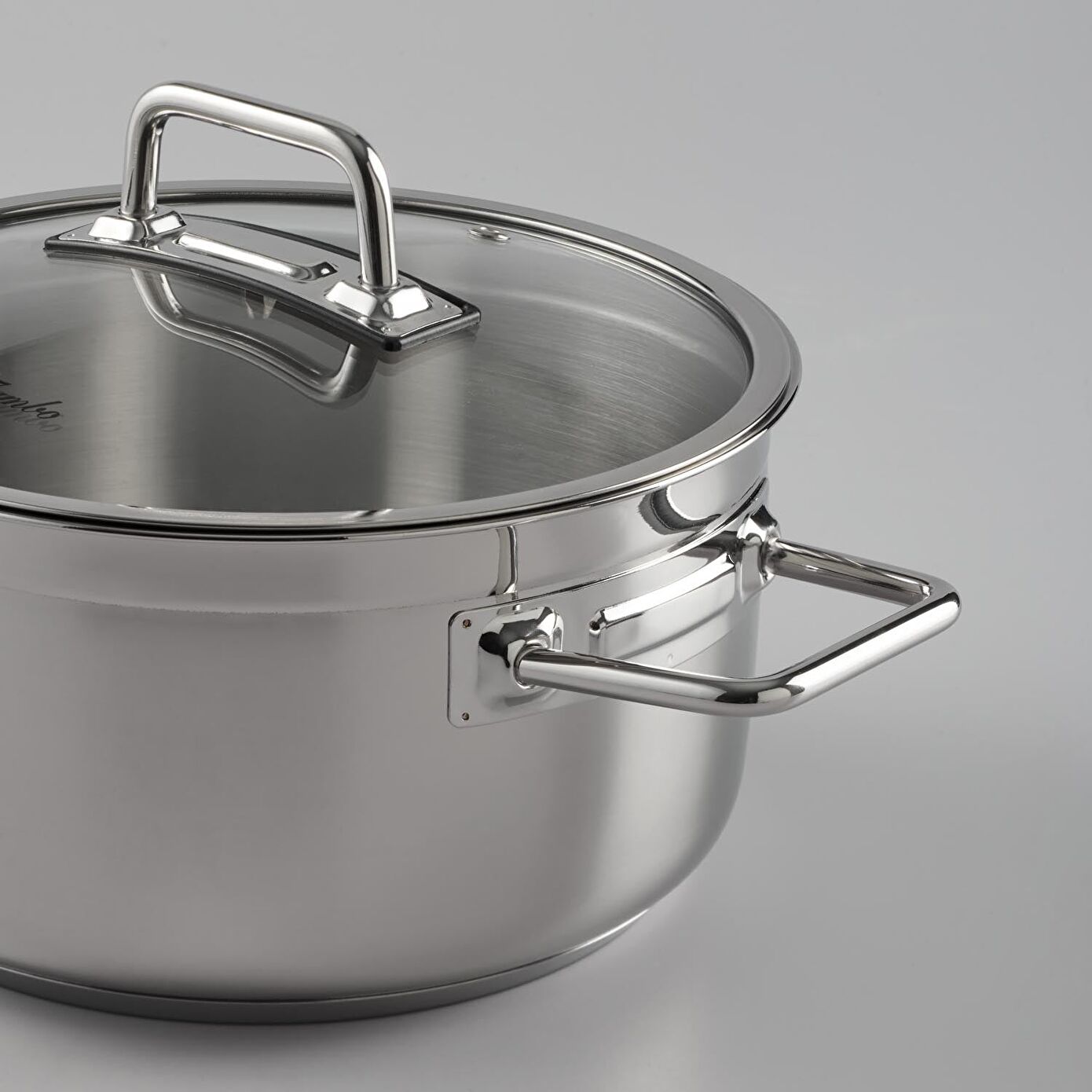 - Paslanmaz Çelik Dayanıklılığı:18/10 CrNi paslanmaz çelik, korozyona karşı üstün direnç sağlar ve yıllar boyunca parlaklığını korur. Yemeklerin doğal lezzetini bozmadan sağlıklı pişirme sunar.