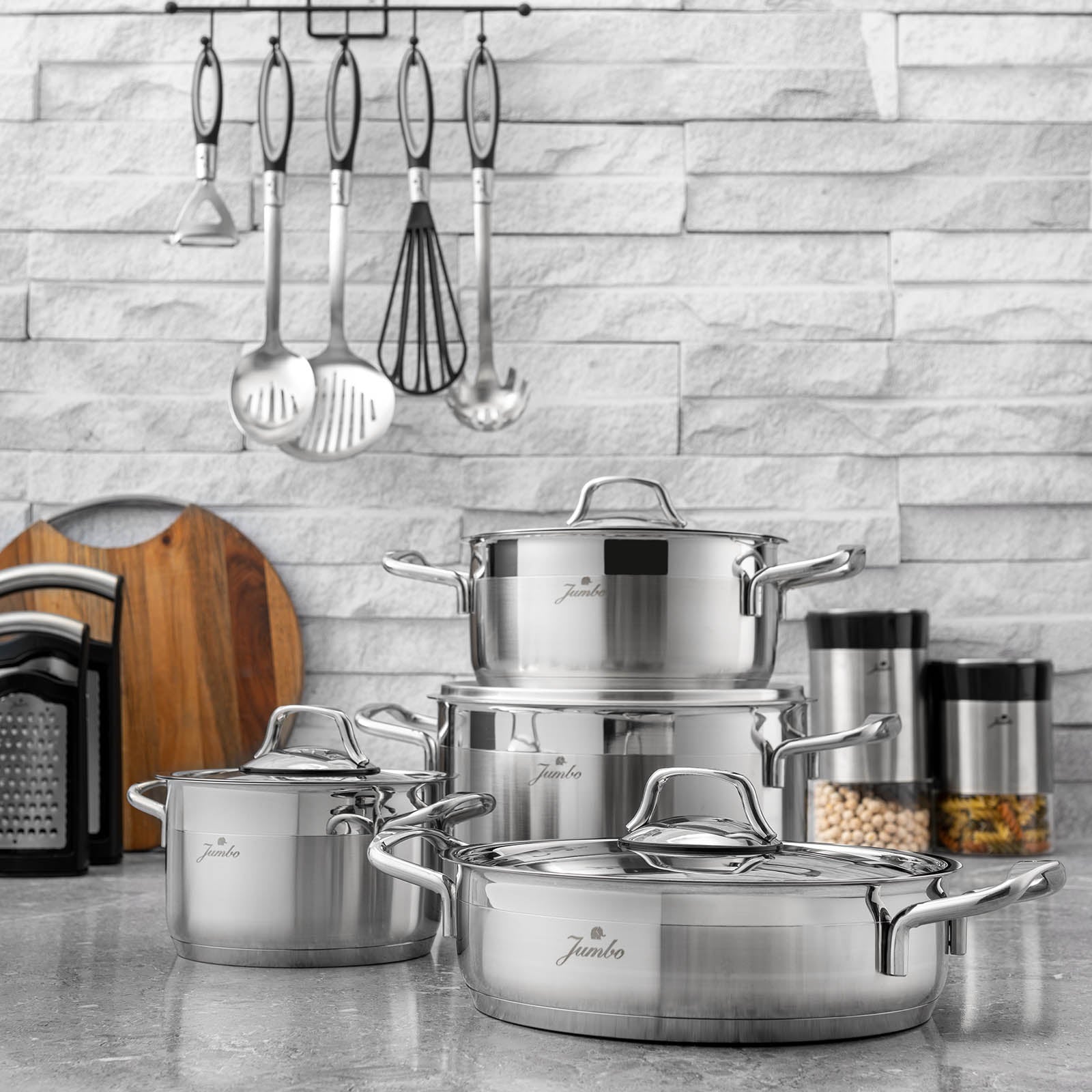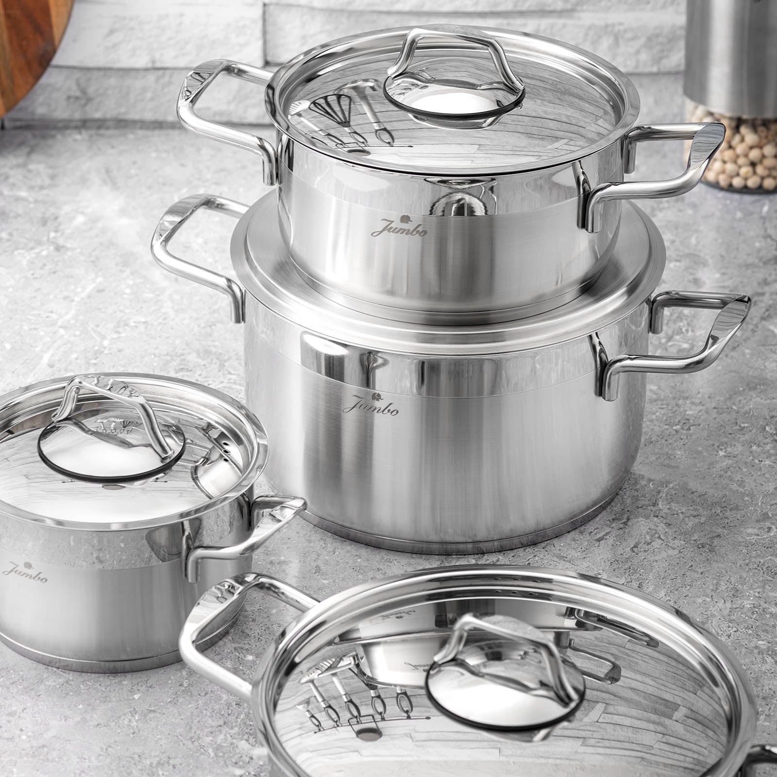 Jumbo Myra Çelik Tencere Seti, çeliğin dayanıklı yapısını ve zarafetini mutfaklarınıza taşır. İster günlük yemeklerinizde ister özel tariflerinizde kullanın, bu set her seferinde mükemmel sonuçlar elde etmenizi sağlar. Sofralarınıza kalite ve şıklık katmak için tasarlanmış bu set, mutfakta vazgeçilmez yardımcınız olacak.