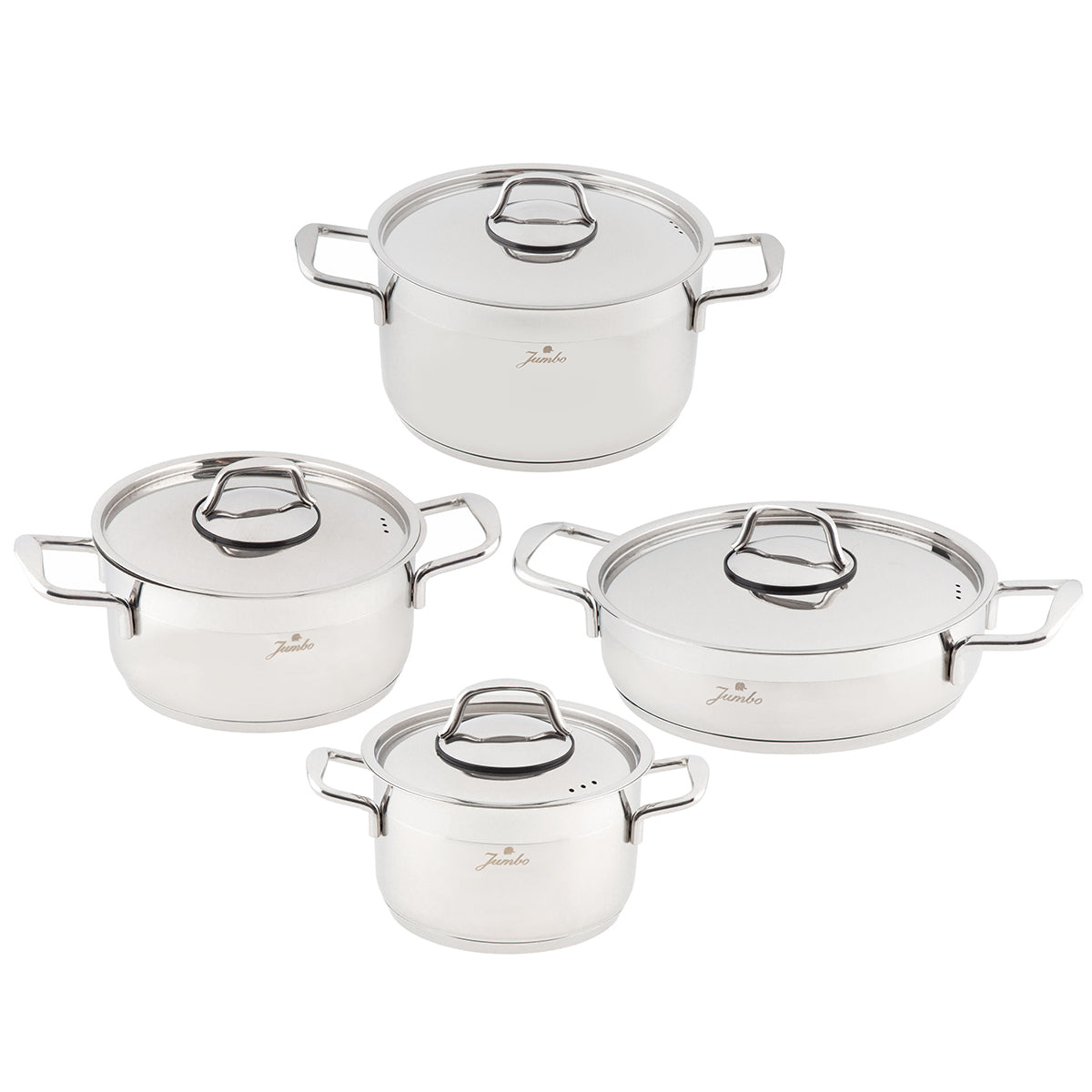 Mutfakta dayanıklılığı, şıklığı ve fonksiyonelliği bir araya getiren Jumbo Myra 8 Parça Çelik Tencere Seti, yemek pişirme deneyiminizi kusursuz hale getiriyor. 304 paslanmaz çelik gövdesi, kapağı ve kulplarıyla üstün kalite sunarken, tasarımındaki modern detaylarla mutfağınıza zarafet katıyor.