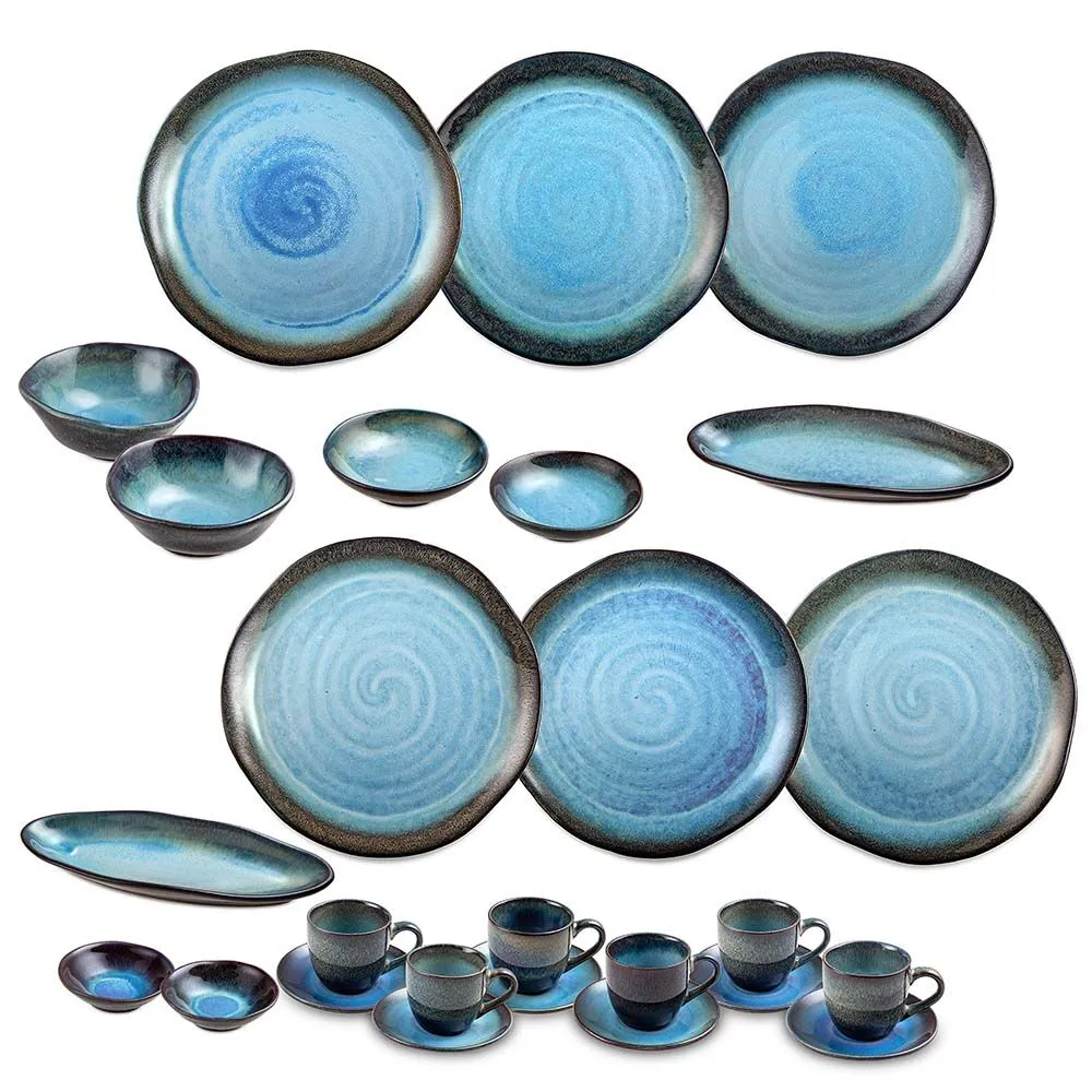 Jumbo Ocean 26 parça 6 kişilik kahvaltı takımı ile sevdiklerinize şık sofralar hazırlayabilirsiniz. Kahvaltı keyfinizi arttıran bu takım yüksek kalitesi ve göz kamaştıran tasarımı ile sofralarınıza eşlik ediyor. 6 kişilik olan bu kahvaltı takımı geniş aileler için uygun modeller arasında. Misafirlerinize ve ailenize harika bir kahvaltı deneyimi yaşatabileceğiniz Jumbo Ocean kahvaltı takımı geniş parça sayısı ile de dikkatleri üzerine çekiyor. Kahvaltı sofrasın olması gereken tüm parçaları size sunan Jumbo Ocean'ın her bir parçası özenle tasarlanıyor. Stoneware malzemesinden üretilen bu takım mavi tonlarına sahip olup kendinizi adete denizdeymiş gibi hissedebilmenizi sağlıyor. Isıya ve dış etkilere karşı dayanıklı olan malzemesi pürüzsüz bir görünüme sahip. Aynı zamanda sağlamlığı ile de uzun yıllar boyunca sizlere eşlik edebiliyor. Yuvarlak şekilde tasarlanan bu kahvaltı takımı sofranızda f