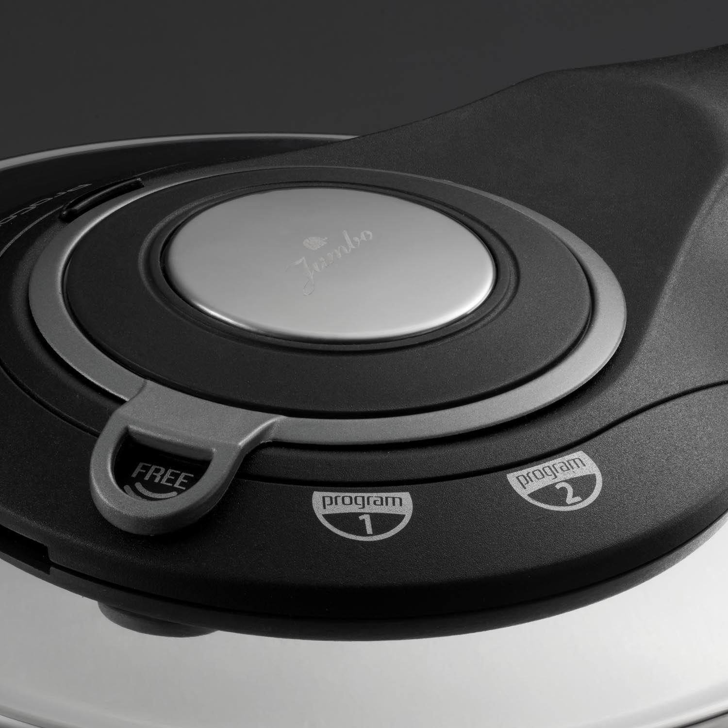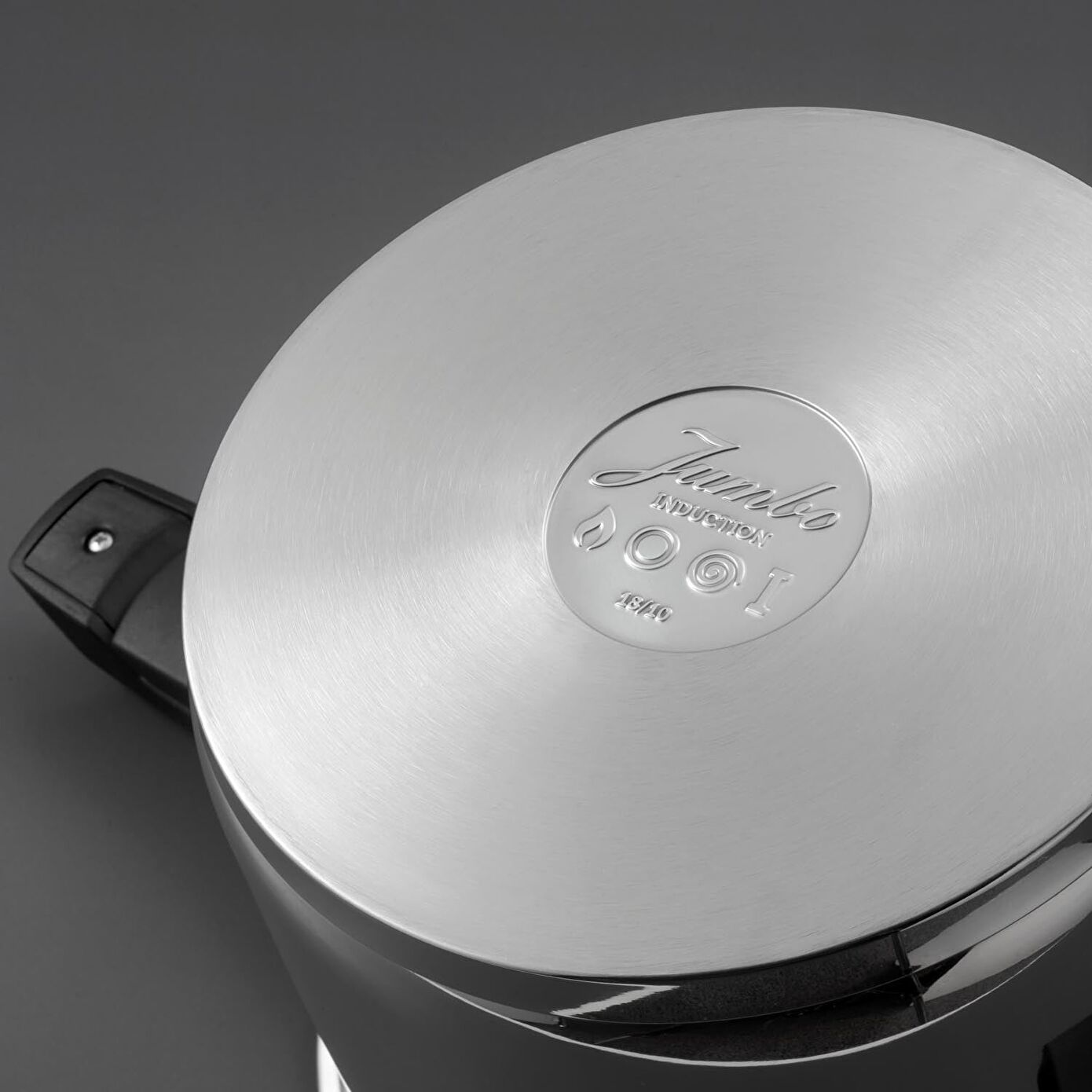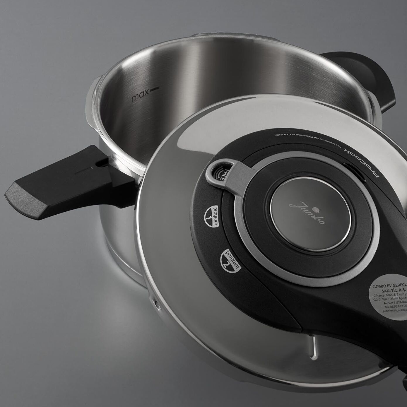 430 paslanmaz çelik taban ve 304 paslanmaz çelik gövdeden imal edilen bu tencerenin kapa üstü tutma kolu ve yanlardaki sapları, ısıya ve çizilmeye dayanıklı bakalitten üretilmiştir. Ayrıca bu Jumbo düdüklü tencerede 3 farklı basınç ayarı bulunmakta. Birinci kademe, 1,1 basınç seviyesine sahip serbest konumlu hava boşaltma kısmı iken ikinci kademede sebze pişirmeye yarayan 0,6 bar basınç seviyeli orta kısım yer alıyor. Üçüncü ve son kademe ise et ve bakliyat pişirmeyi kolaylaştıran 0,70 bar basınç seviyesine sahip kısım olarak karşımıza çıkmakta.