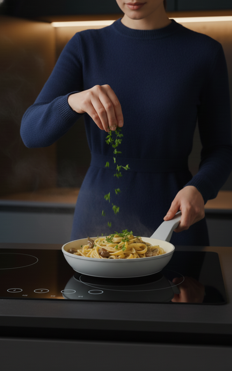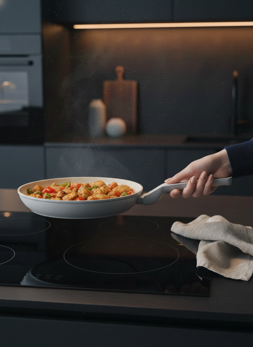 PFAS ve Zararlı Kimyasallar İçermez: Swiss kristallerden oluşan yapışmaz yüzeyi; insan sağlığını tehlikeye sokan “PFAS” gibi zararlı kimyasal maddeler içermez.