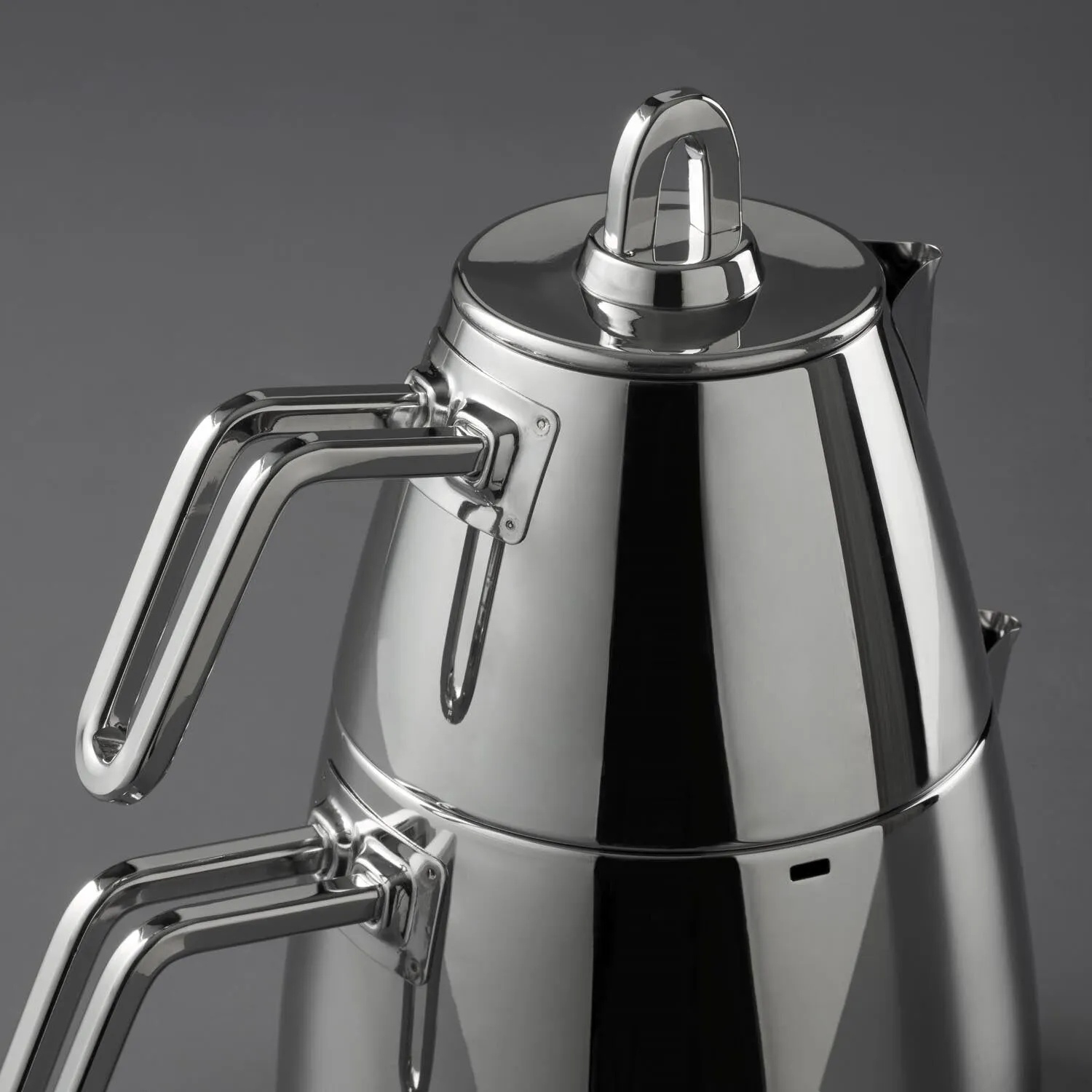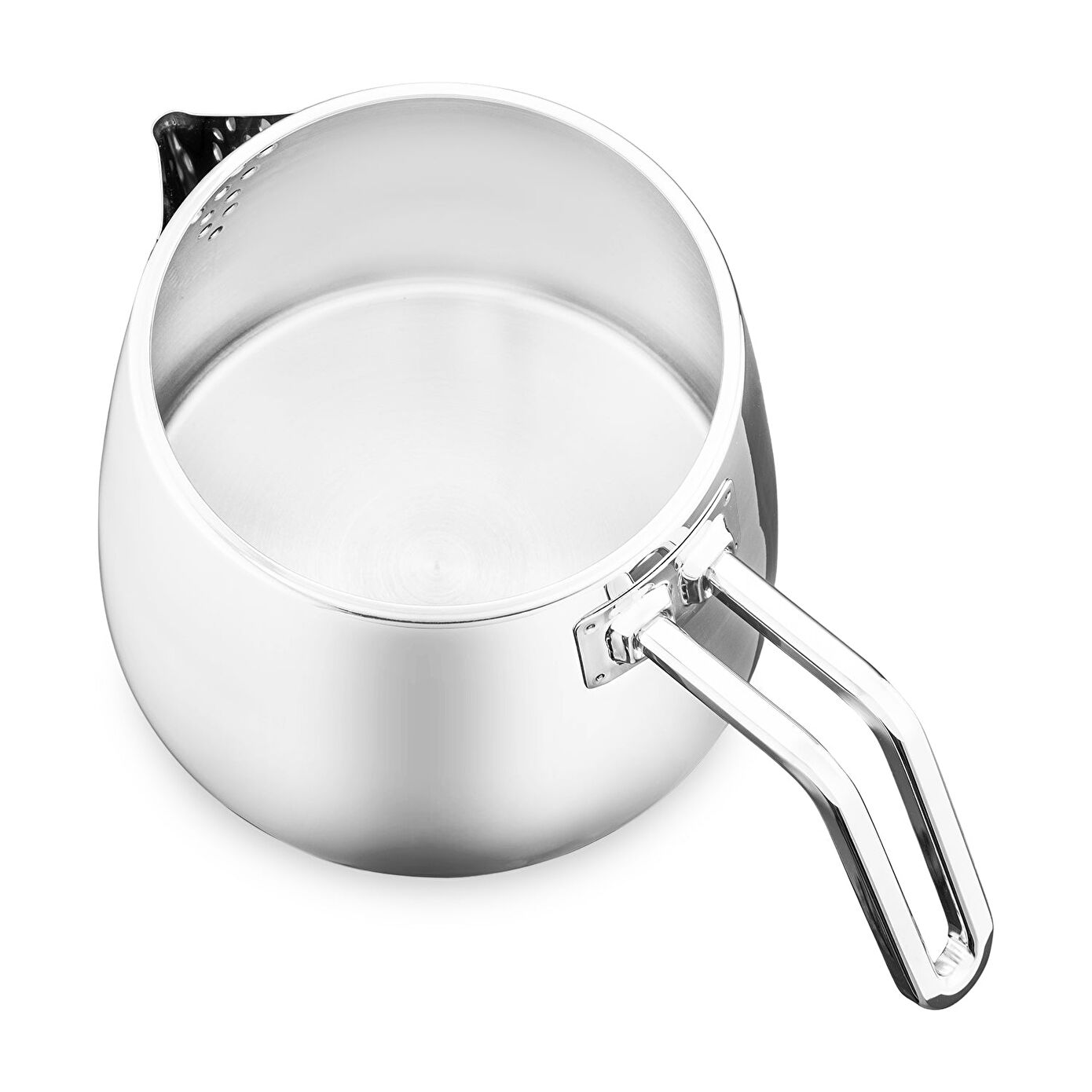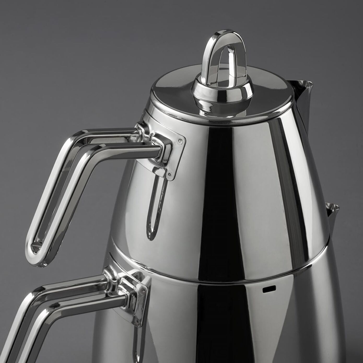 Özel bir polisaj işleminden geçirilen Teos, ilk günkü göz alıcı parlaklığını uzun süre koruyabiliyor. Bunun yanı sıra tamamen çelikten üretilen kulpları elinizi yakmıyor. Kapsül taban teknolojisiyle üretilen model, ısı transferi sayesinde hem zamandan hem de enerjiden tasarruf edebilmenizi sağlıyor. Teos'un demlik bölümünde yer alan kapağın da tutma kulpu ısıyı iletmiyor ve böylece elinizi yüksek sıcaklıktan koruyor. Siz de güvenli bir şekilde çayın demini alıp almadığını veya demin ne kadar kaldığını kontrol edebilirsiniz. Çay servisi sırasında kapağın düşmemesi için de yan bölümde küçük bir çıkıntı yer alıyor. Bu çıkıntı, kapağınızın sıkışmasını sağlayarak siz istemediğiniz sürece çıkmasını engelliyor. Jumbo Teos'un pratiklik sağlayan bir diğer özelliği ise geniş ağız kısmı. Elde yıkama sırasında, özellikle demlik bölümündeki, dar çaydanlık ağızları işinizi epey zorlaştırabiliyor. Bu modelde yer alan ağız tasarımı, çaydanlığınızı rahatça temizleyebilmenize imkan tanıyor. Bunun yanı sıra Jumbo Teos, bulaşık makinesinde de rahatlıkla yıkanabiliyor. Siz de çaydanlığınızın zarar görmesinden korkmadan bulaşık makine atarak pratik bir şekilde temizlenmesini sağlayabilirsiniz.
