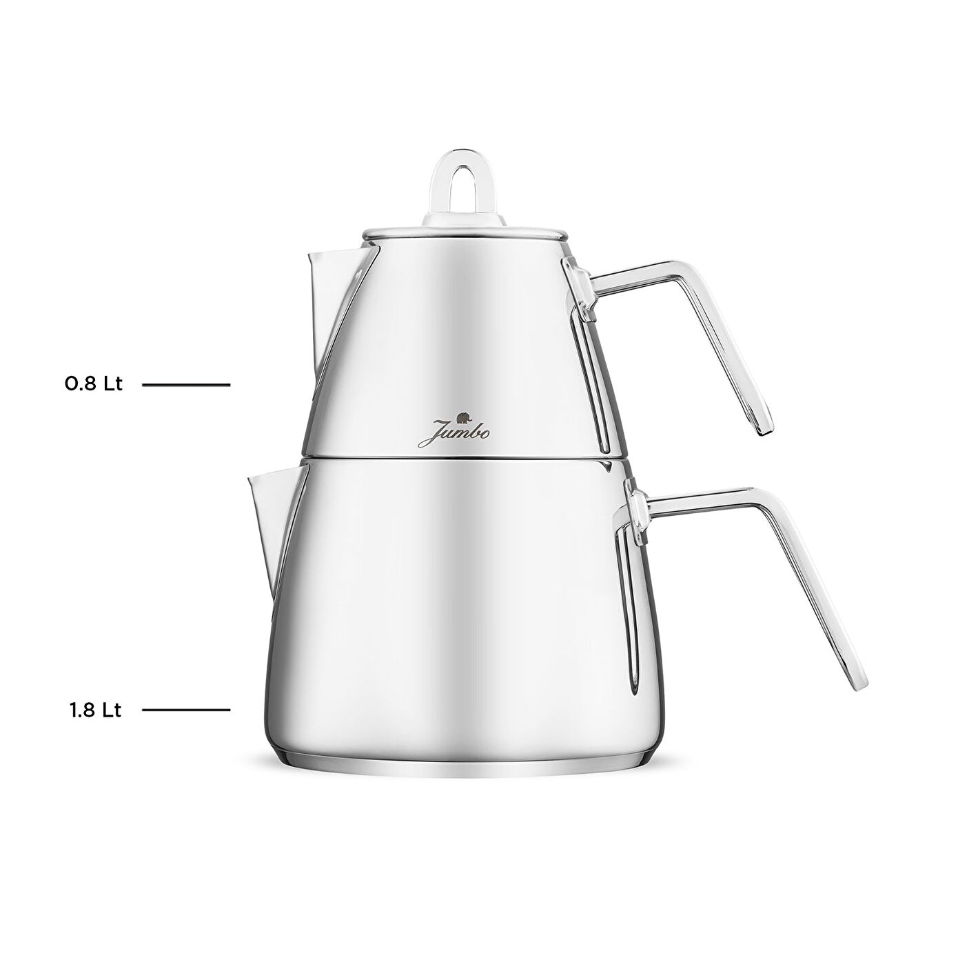 Tasarımıyla cezbeden Jumbo Teos metal saplı çaydanlık paslanmaz gövdesi sayesinde de zamana karşı son derece dayanıklı. Küçük ayrıntılarla kullanım deneyimlerinizi iyileştirmeyi amaçlayan bu model, sizin konforunuzu düşünerek üretildi. Her tür koşulda kullanıma elverişli olan bu şık çaydanlık mutfağınıza da çok yakışacak. Farklı çay fincanları ve çay bardağı setleriyle birlikte de kullanabileceğiniz Jumbo Teos metal saplı çaydanlıkla siz de vakit kaybetmeden tanışın.
