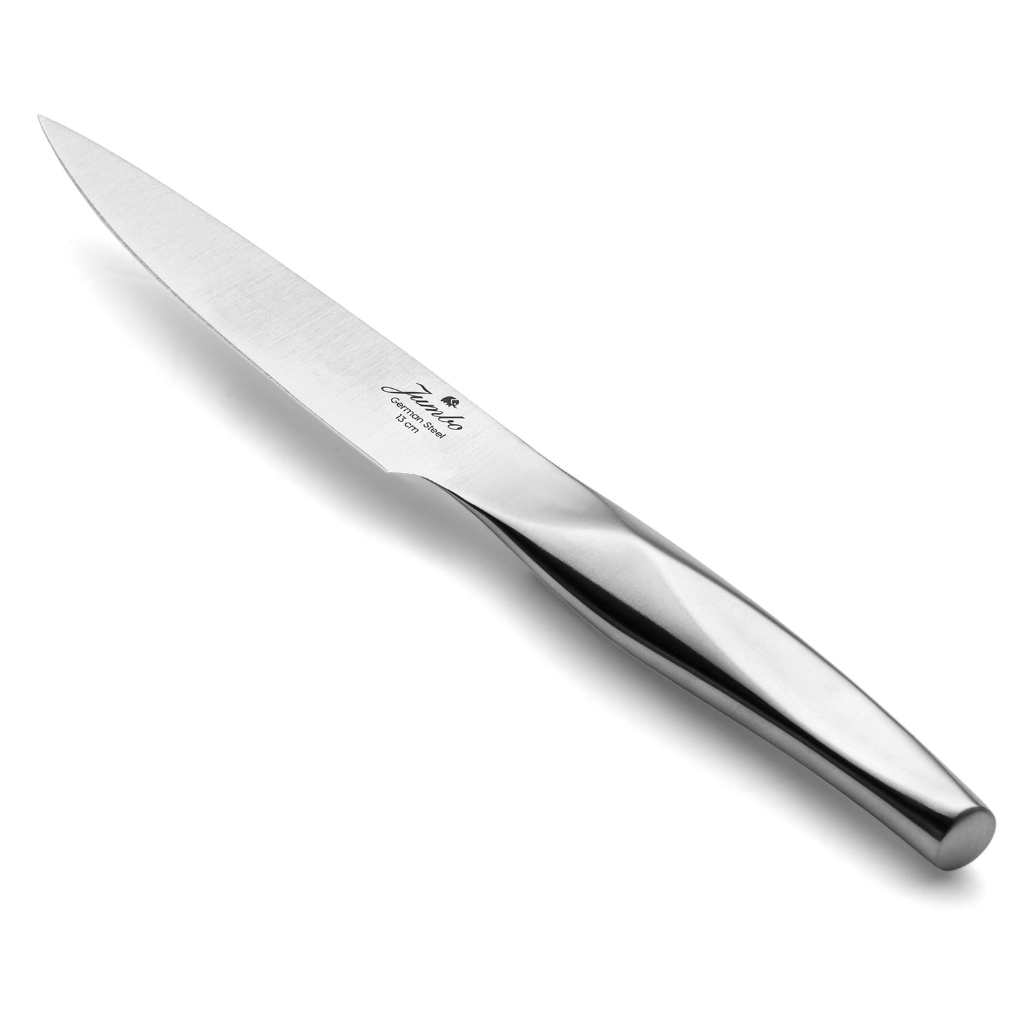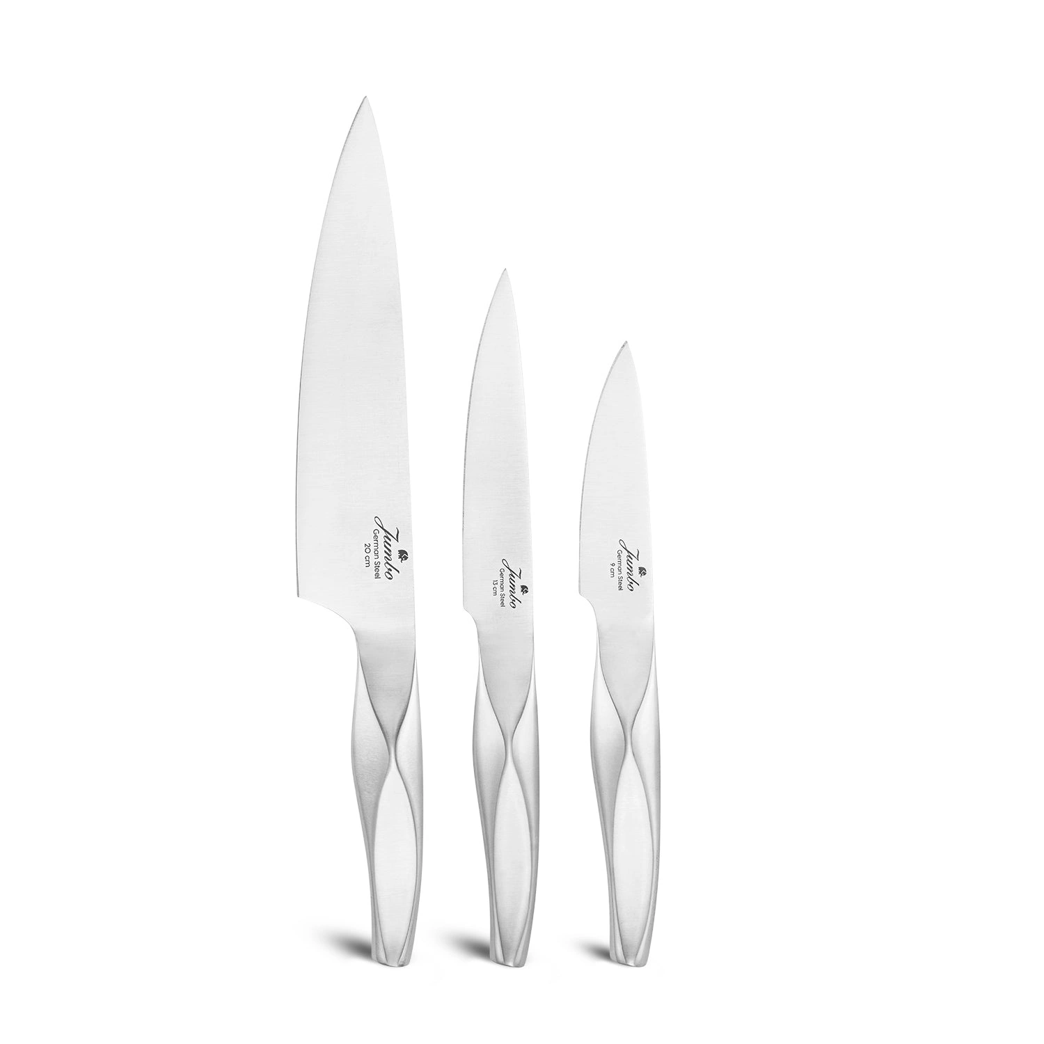 Jumbo Vera 3 parça bıçak seti yemek hazırlama maceralarınıza konfor ve profesyonellik katmaya geliyor. Şeflerin vazgeçilmezi olan bu takım et, balık, sebze veya meyve fark etmeksizin birçok gıdanın özenle dilimlenmesi için birebir. Farklı ebatlarda tasarlanan setin içerisindeki bıçaklar farklı gıdalara özel olarak sunuluyor. Örneğin küçük ebatlardaki bıçak çeşitler sebze soymada kullanılırken büyük boy bıçaklar et gibi sert gıdalar için tercih ediliyor. Tam 3 farklı bıçaktan oluşan bu set ile yemeklerinizi profesyonel standartlarda hazırlamanın keyfini çıkarın. Vera bıçak seti konfor konusunda da kullanıcılardan tam not almayı başarıyor. Bıçakların güçlü ve konforlu tutuş sunan ergonomik tasarımı kullanım süresince kontrollü ilerlemenizi sağlıyor. Ayrıca hafif yapıya sahip olan Vera bıçakları uzun süreli kullanımda dahi ağırlık hissi yaratmıyor. Yemek hazırlama aktivitelerini artık gözünüzde büyütmeyin. Hafif, dayanıklı ve güvenli olan Jumbo Vera bıçak seti ile evinizin şefi artık sizsiniz!