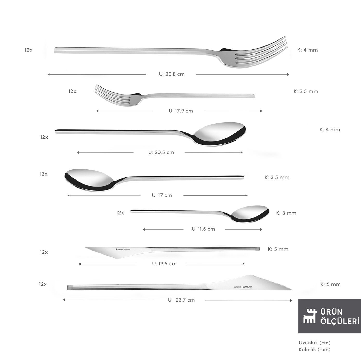 - 12 adet Tatlı Kaşığı (17 cm 3.5 mm)