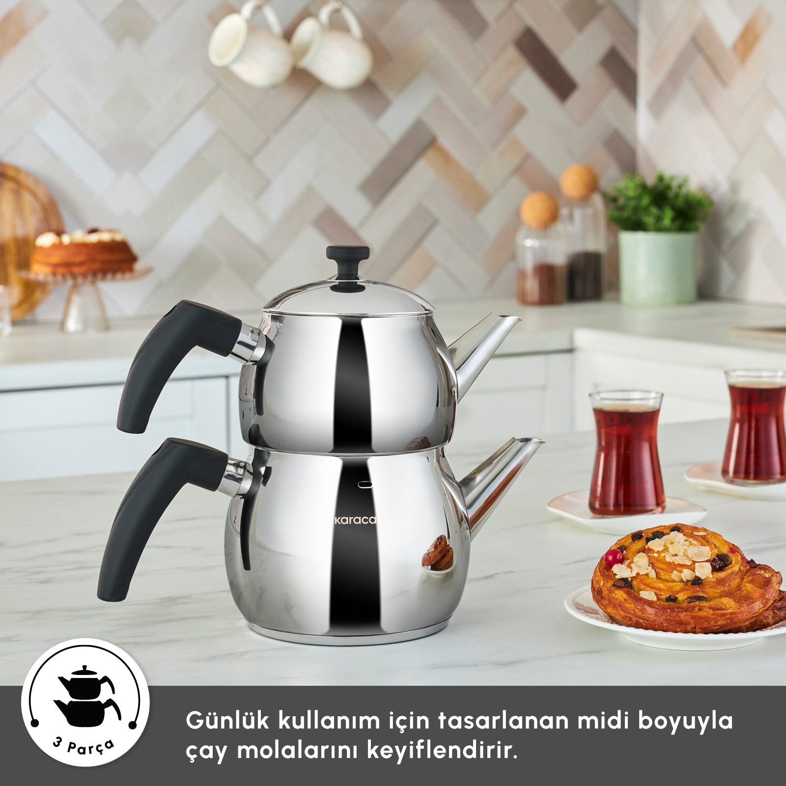 Karaca Alim İndüksiyon Tabanlı Midi Boy Çaydanlık