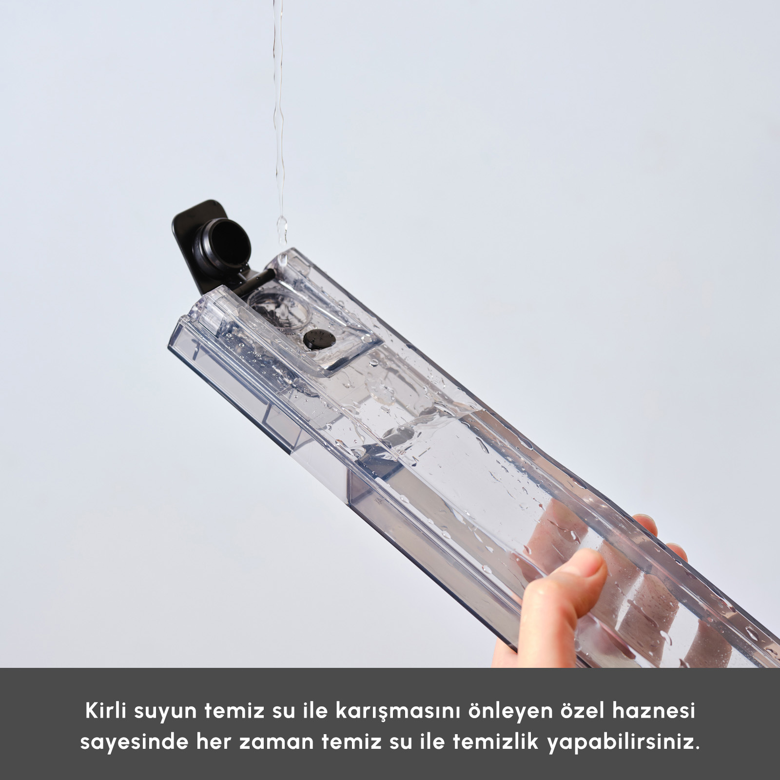 - Kirli suyun temiz su ile karışmasını önleyen özel haznesi sayesinde her zaman temiz su ile temizlik yapabilirsiniz.